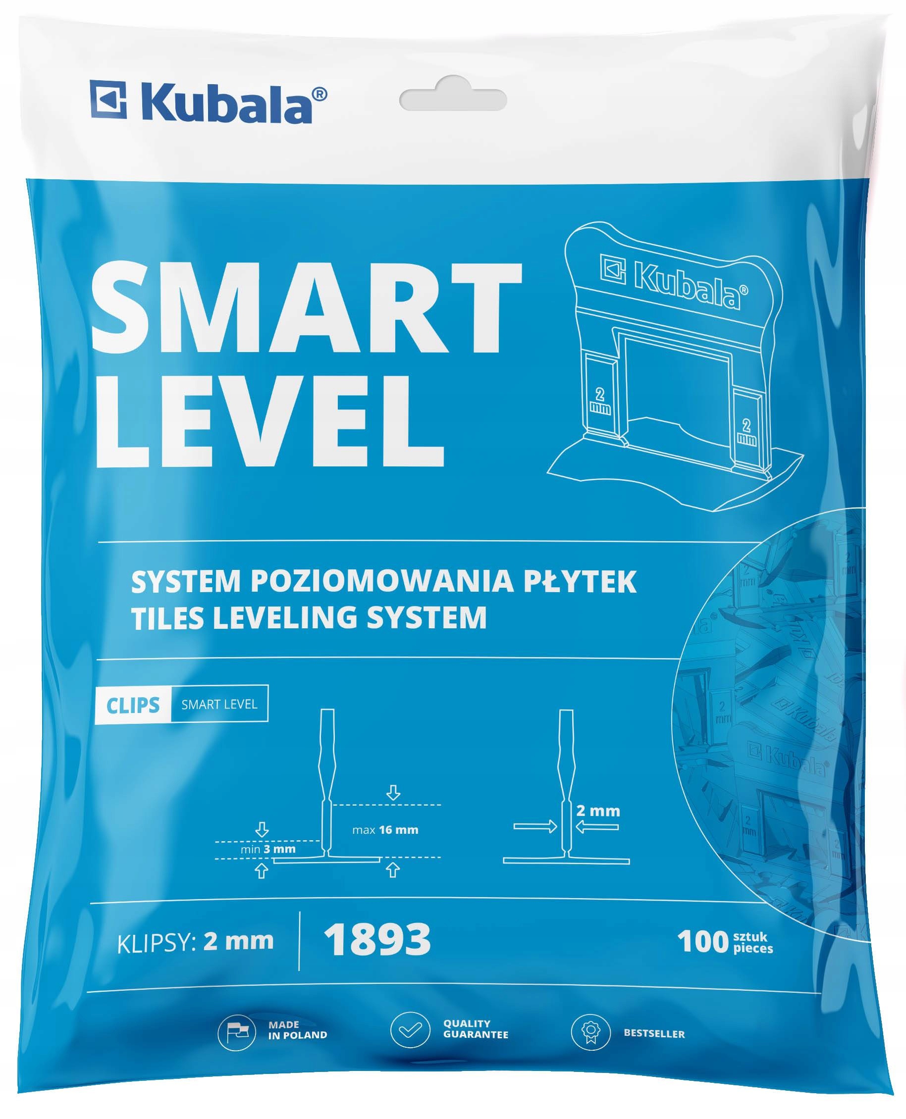KUBALA 1893 SMART ЗАЖИМ ДЛЯ ВЫРАВНИВАНИЯ ПЛИТКИ 2ММ 100 ШТ.