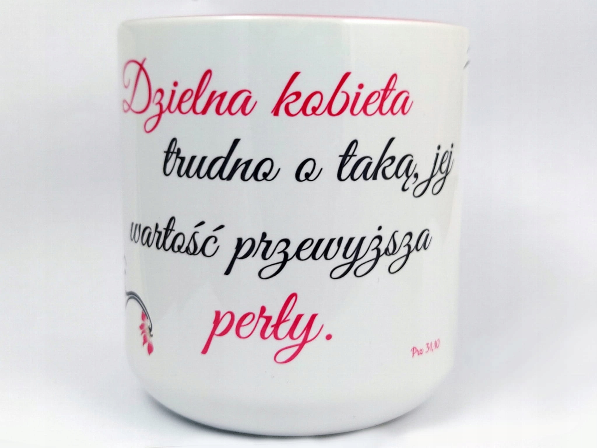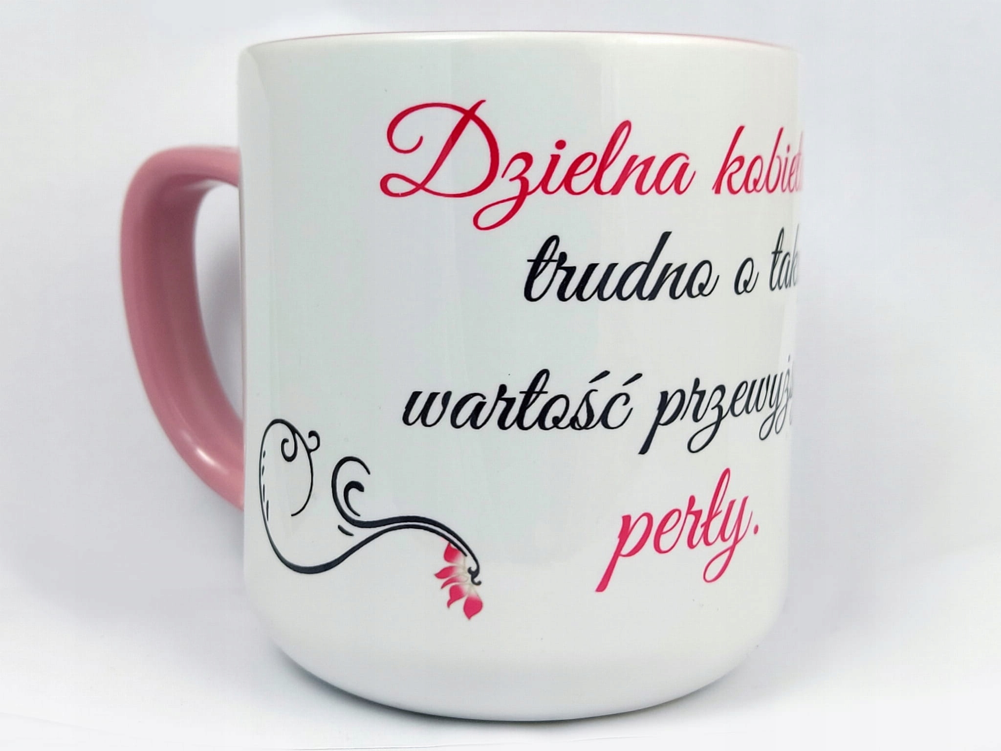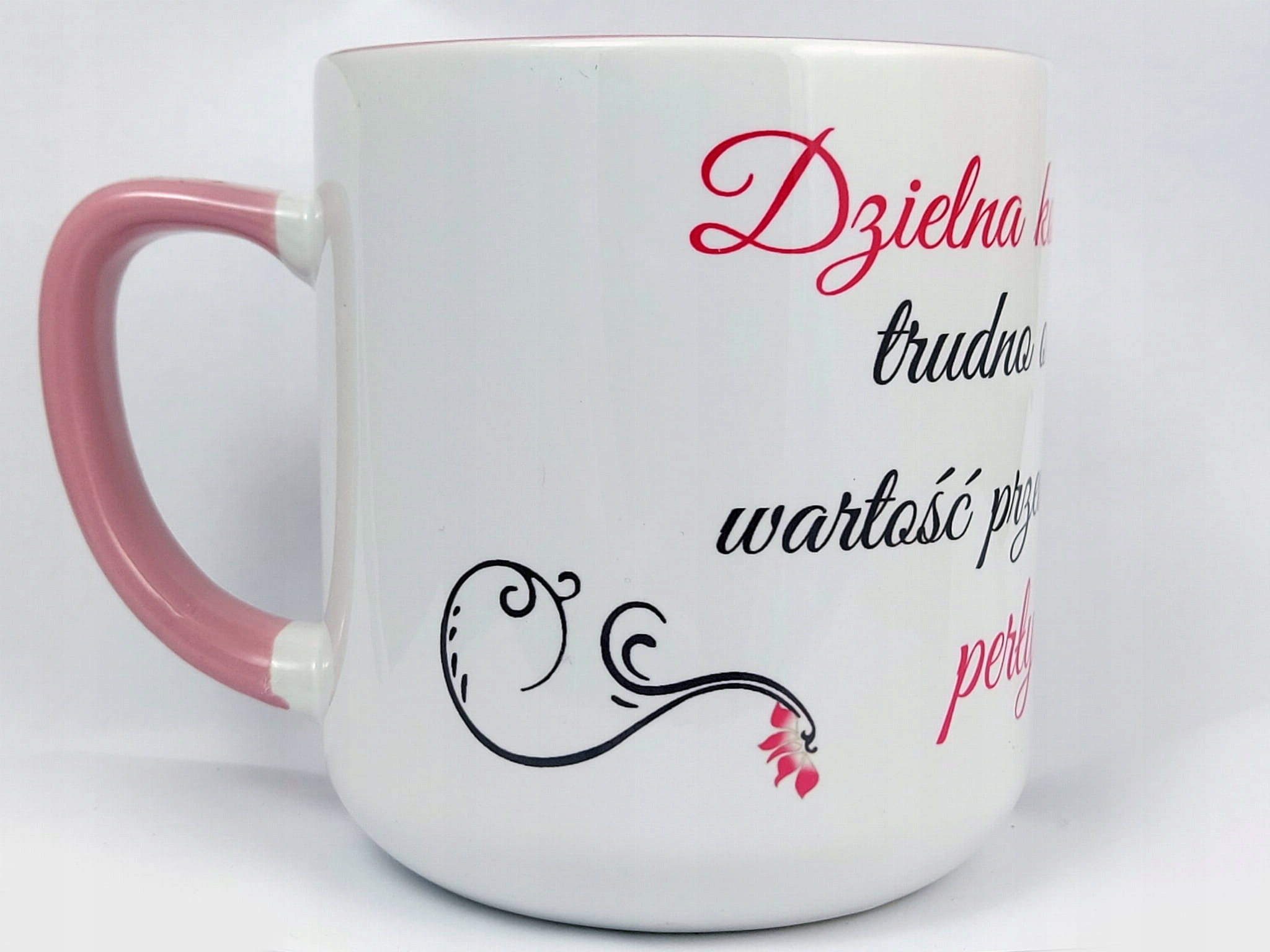 Kubek biało-różowy "Dzielna kobieta" nr. 1