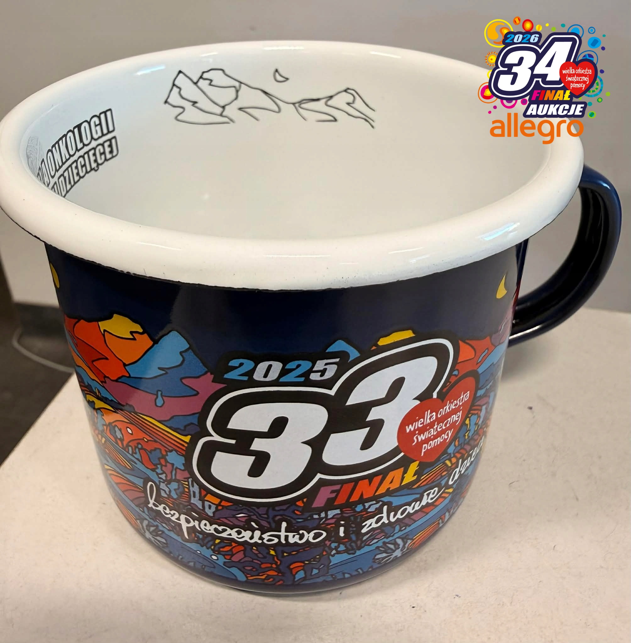 Эмалированная кружка 33-го Финала Большого Оркестра Рождественской Благотворительности – это сочетание эстетики, долговечности и функциональности. Идеально подходит для теплых напитков дома, в походе или во время зимних прогулок. Кружка украшена уникальной графикой, отсылающей к прошлогоднему финалу, что придает ей уникальный характер и делает ее прекрасным подарком или сувениром.