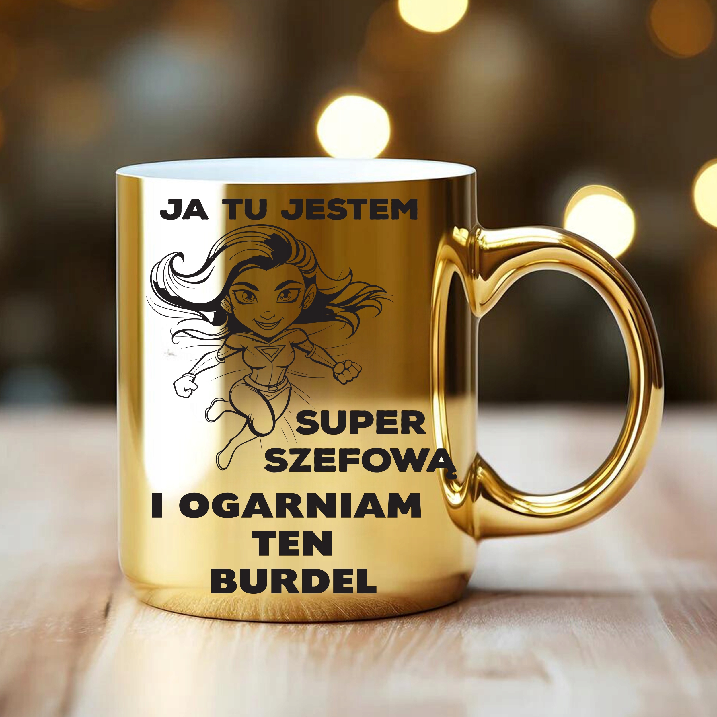 Kubek Prezent ZŁOTY DLA SZEFOWEJ NA URODZINNY IMIENINY GRATIS BŁYSZCZĄCY