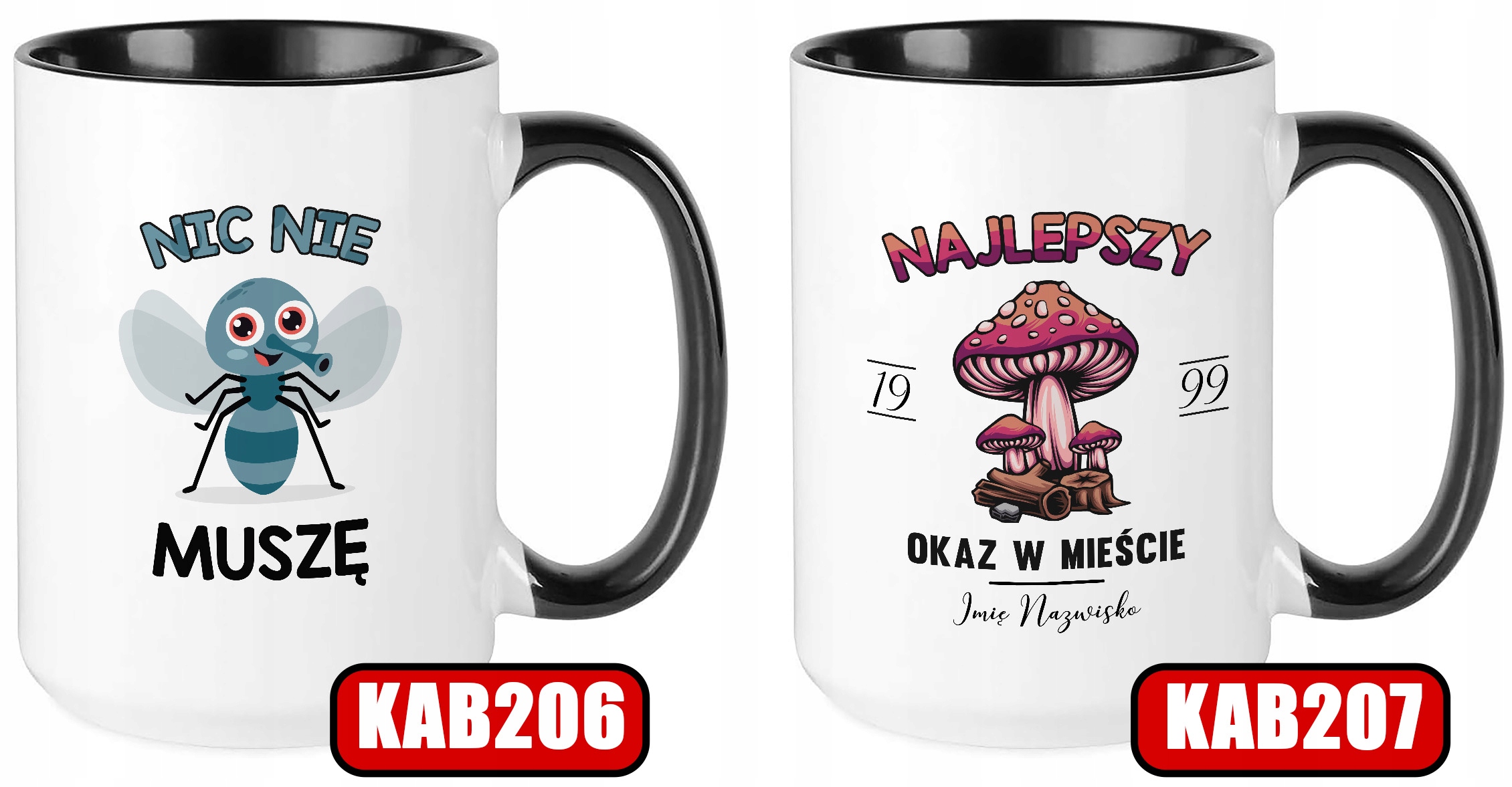 Kubek XXL Czarny NIC NIE MUSZĘ Zabawny Śmieszny Na Prezent WIELE WZORÓW