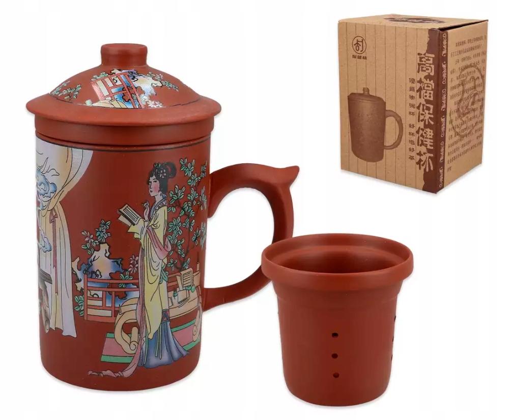 Kubek Z ZAPARZACZEM ceramiczny GEJSZA brąz - 250ml