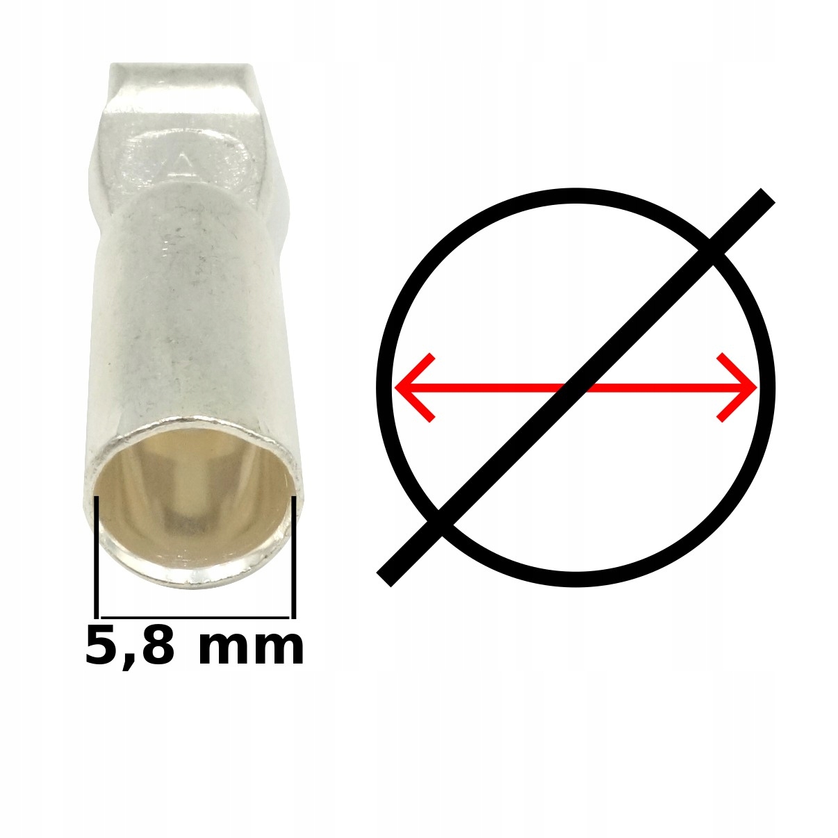- На рисунке слева показаны размеры внутреннего диаметра выводов предлагаемого кубика: 5,8 мм.