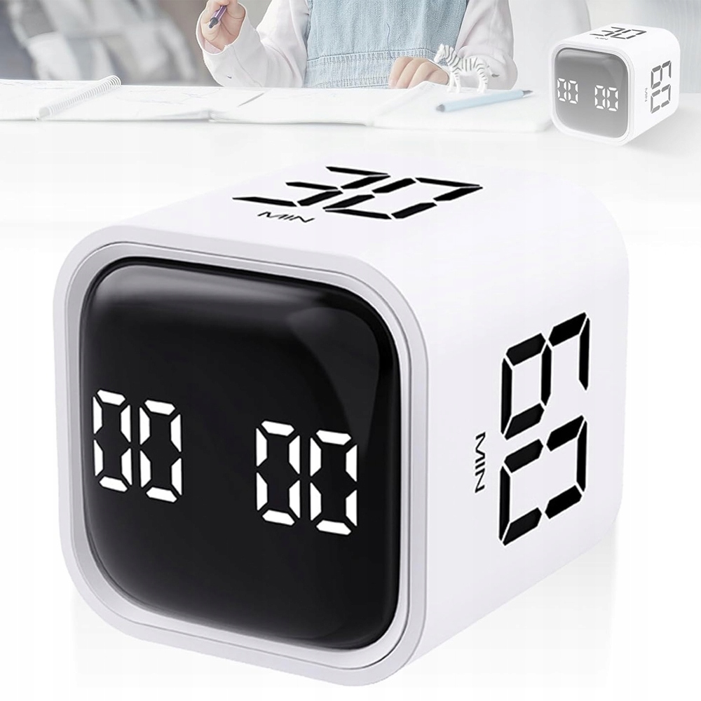 ⏰⏰ таймер куба, цифровой датчик гравитации, ротационный кухонный таймер, батарея, куб, краткосрочные будильники с регулируемым звуком, для детей, спорта, приготовления пищи, работы, обучения (белый) ⏰⏰