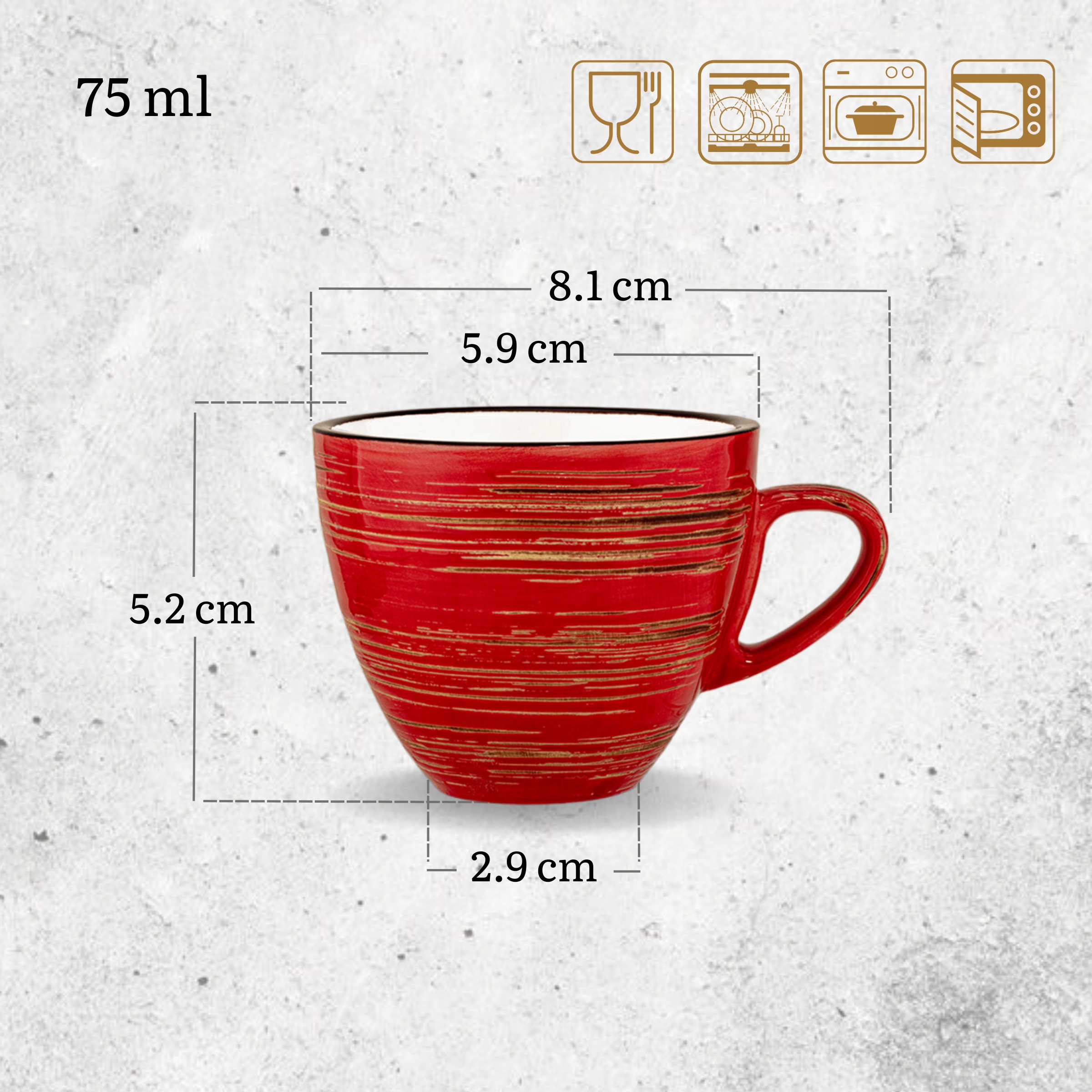 Espresso Cup 75 мл фарфоровой красный набор Wilmax из 6 штук