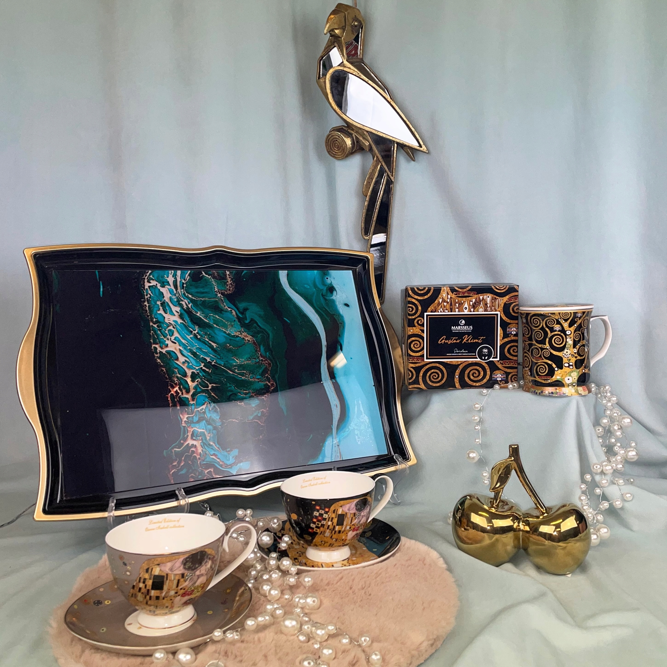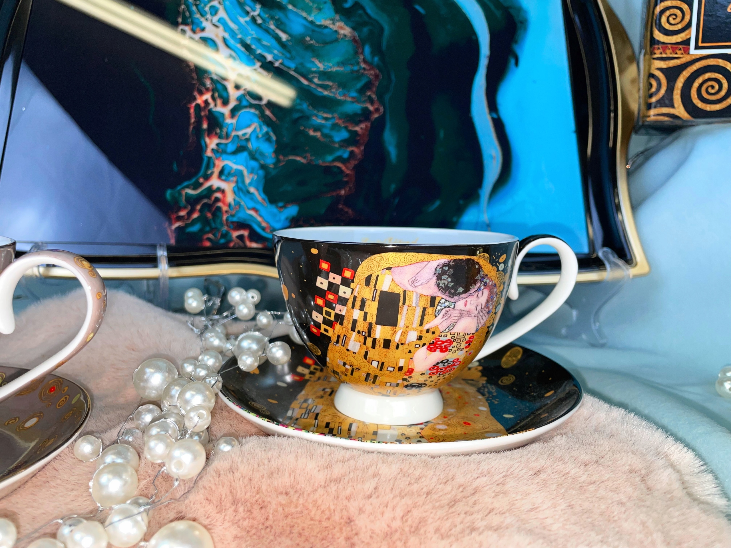 Чашка с украшением, представляющим изображение Gustaw Klimt- Kiss.