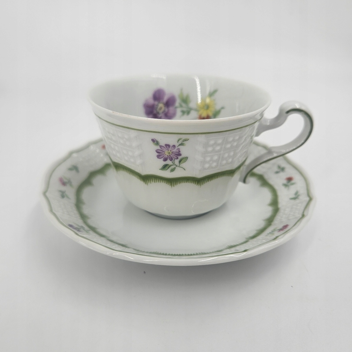 Белый фарфор, украшенный небольшими цветочными мотивами.