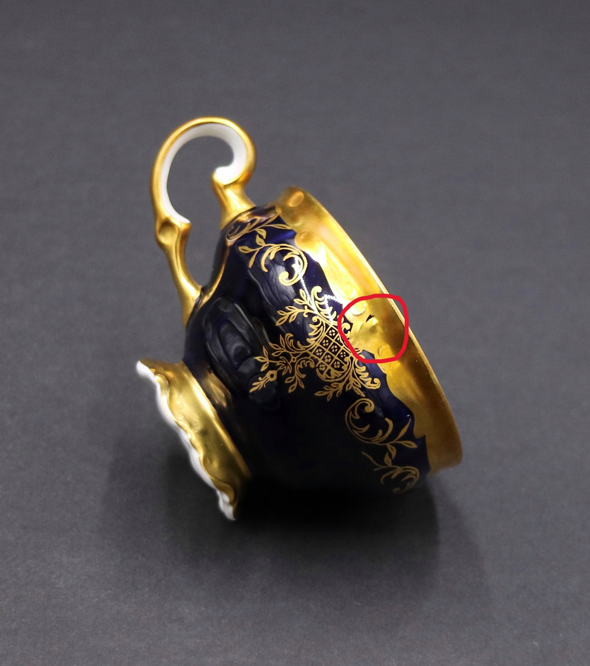 Очень хорошее поведение (минимальное вытирание позолота на чашке и два, дефекты за фабрики в основе - см. Фотографии)