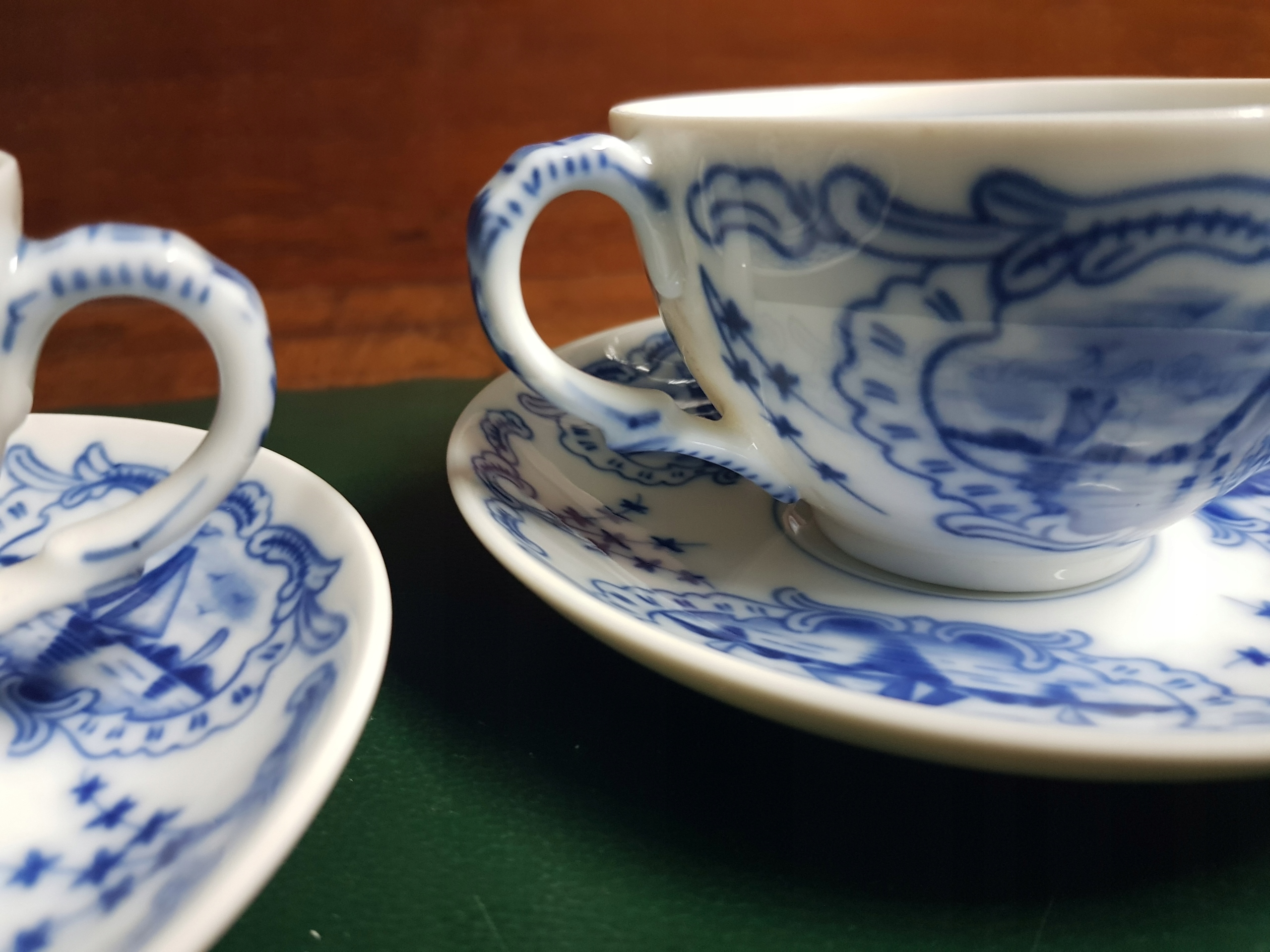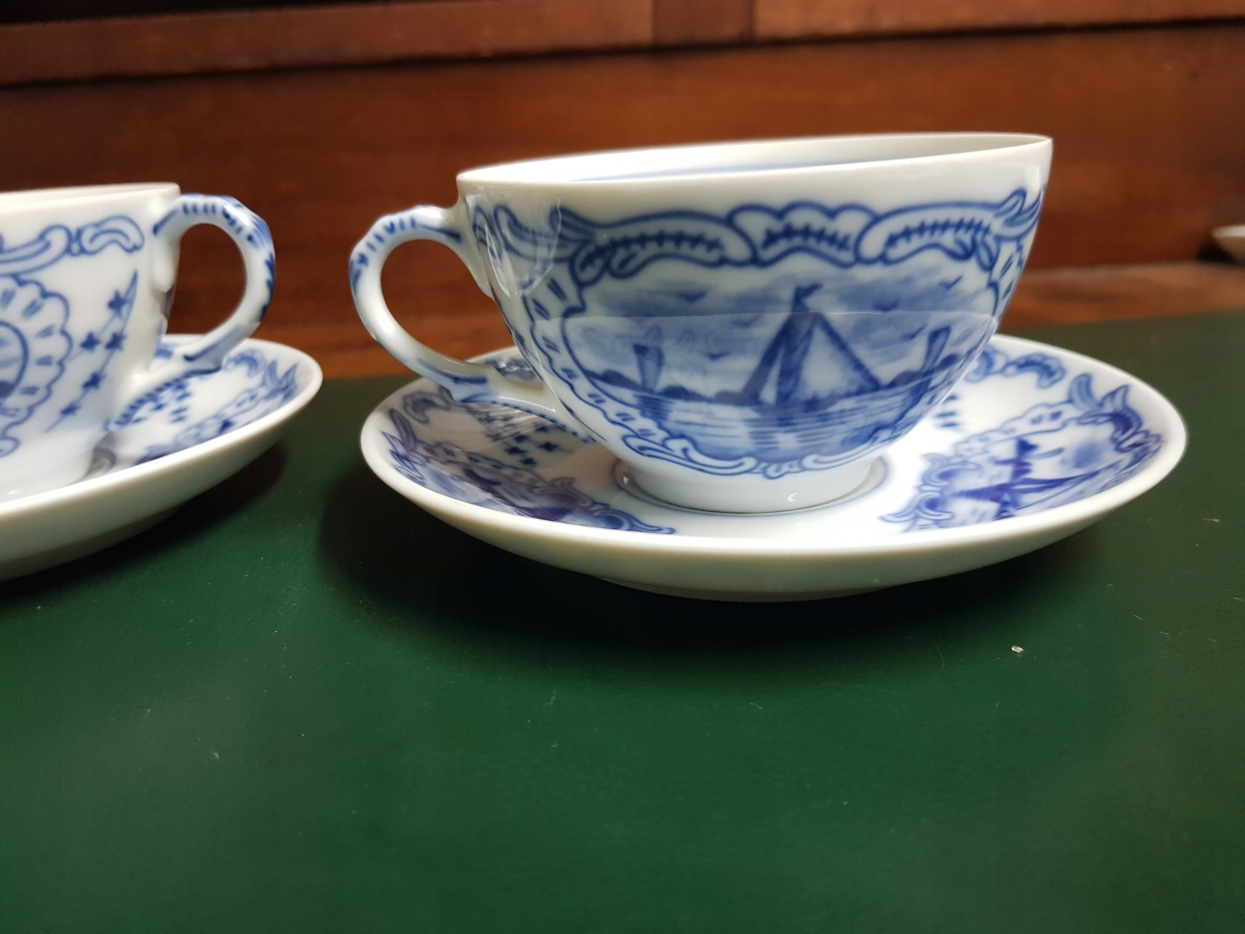 Предмет аукциона — маленькая чашка с блюдцем. Мотивы ветряной мельницы и лодки. В наличии 3 комплекта. Цена указана за 1 комплект.
