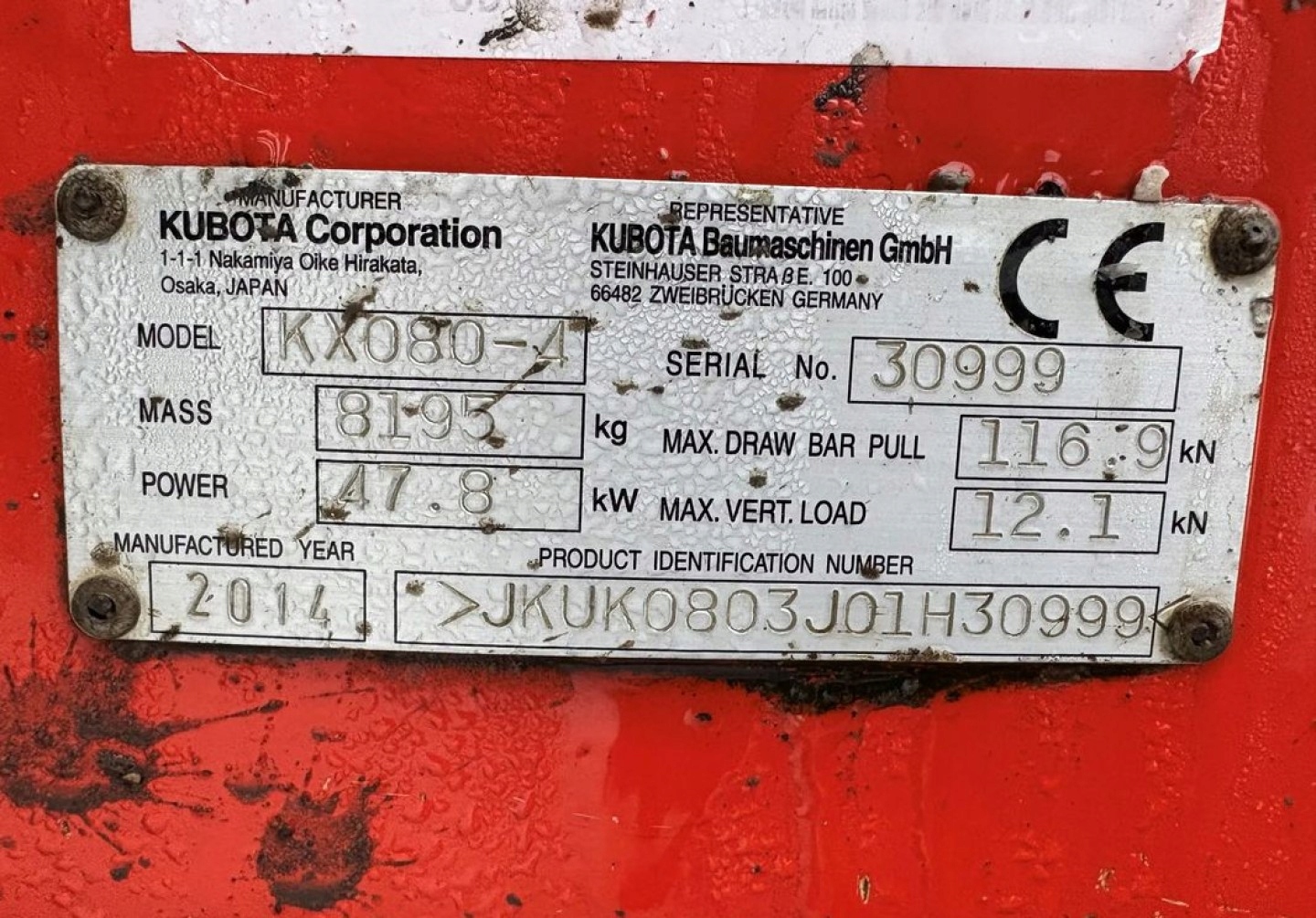 Kubota KX080-4 Kubota KX080-4 2014 Экскаватор. Рототитная лиса