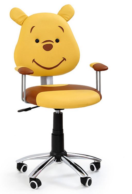 Широкая удобная спинка, большое мягкое сиденье, фиксированные подлокотники и прочное основание обеспечивают комфорт использования. На спинке кресла вышита дружелюбная мордочка плюшевого мишки. К спинке также были пришиты ушки. Каркас изготовлен из пластика и хромированной стали. Кресло регулируется по высоте.