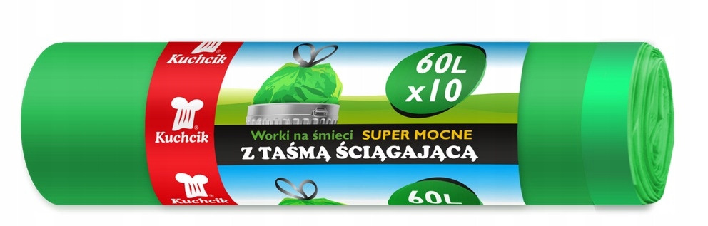 Куччик, мусоровые мешки 60L HDPE Super Super с зеленой спящей лентой, 1