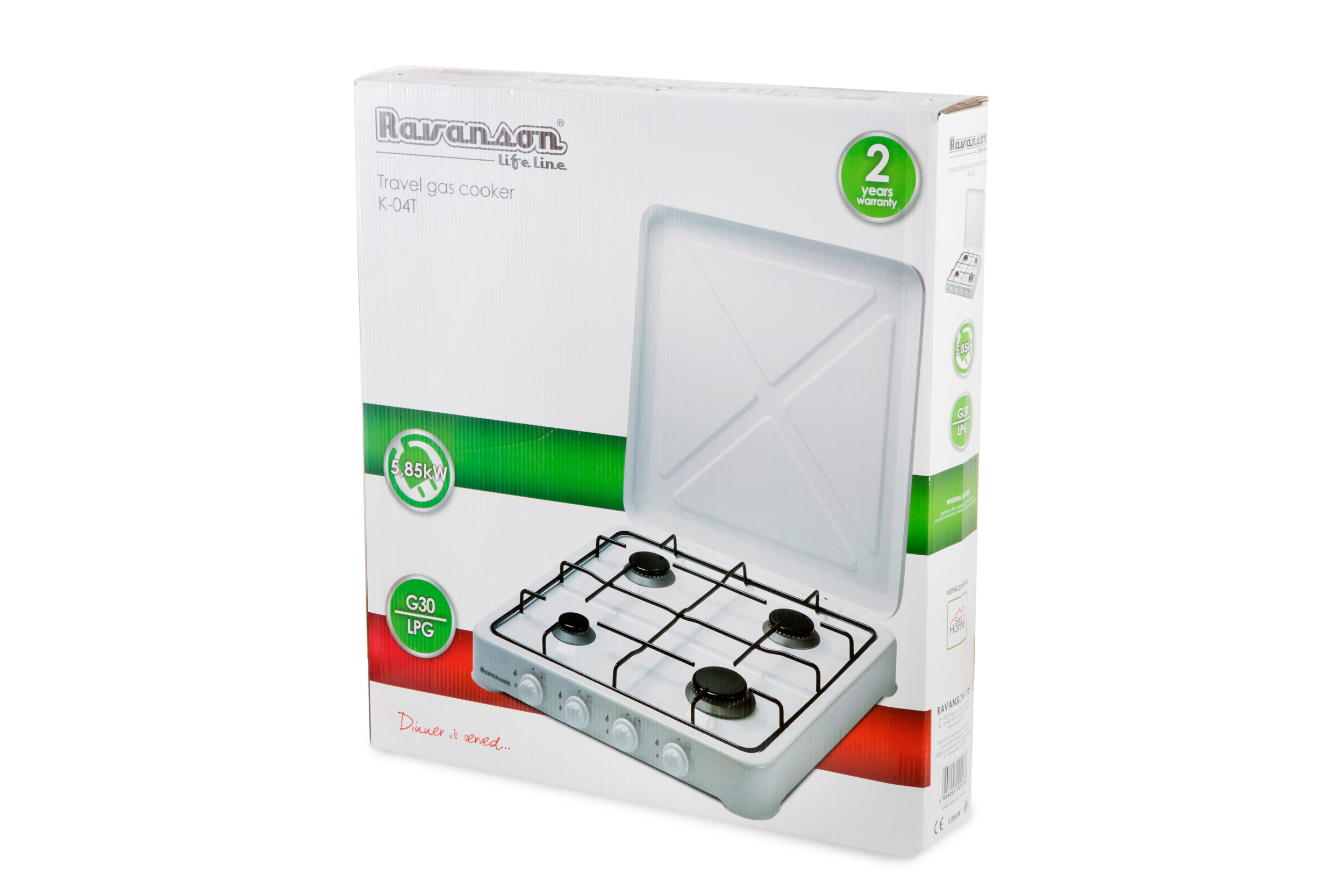 Плита четырехкомфорочная Ravanson K-04T + газовый набор, плюс запальник Elico, белый