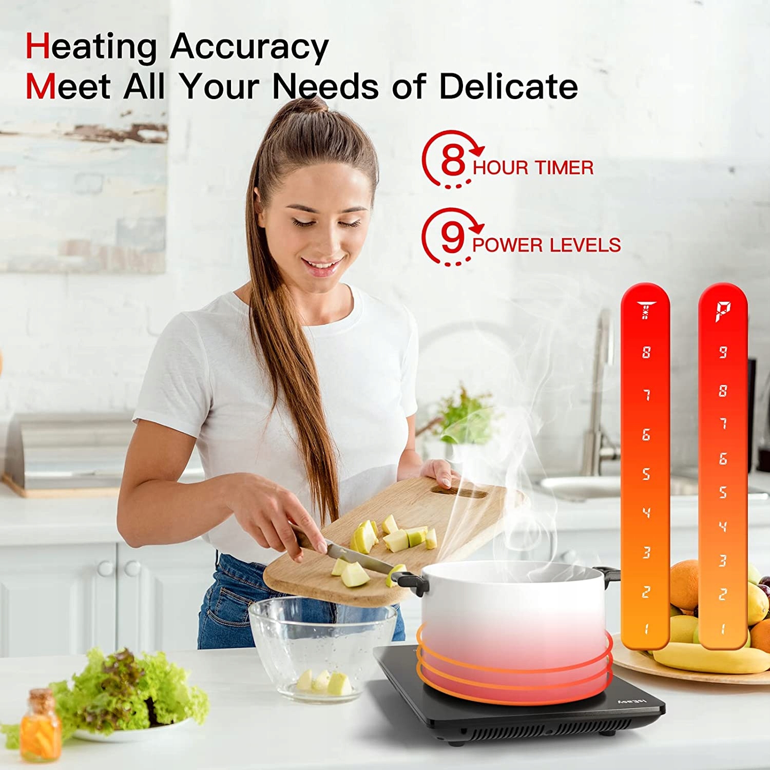 Просто и практично. Одна индукционная плита предлагает 9 регулируемых уровней нагрева: от кипения до кипения. Портативная индукционная плита может удовлетворить ваши ежедневные потребности в приготовлении пищи.