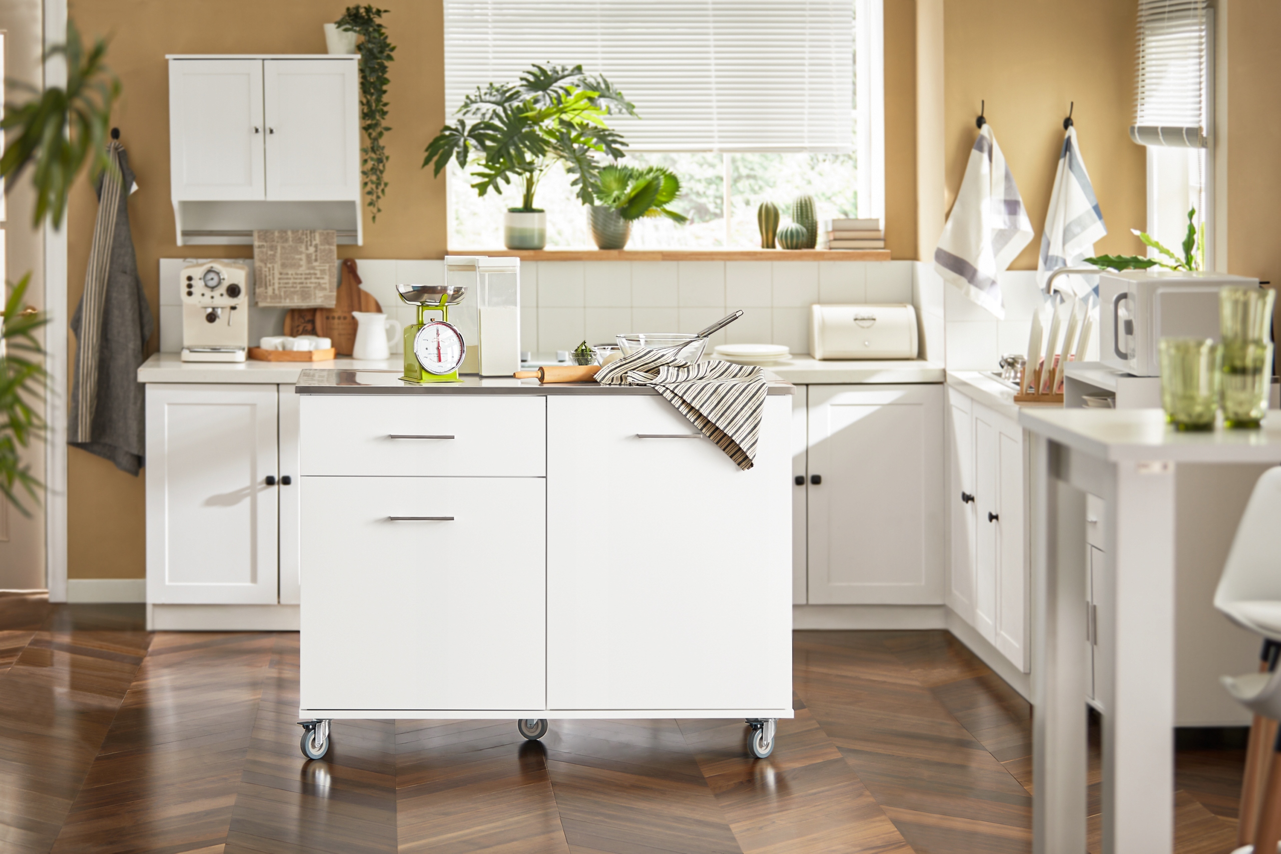 Kuchenny Wyspa Komoda Szafka 120 см Nowoczesny na kółkach,biały FKW117-W