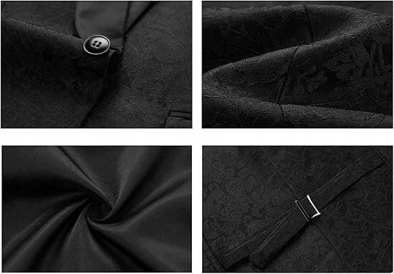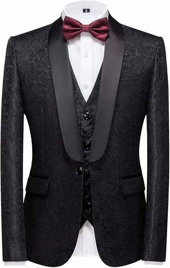 <р> ✅Тип: костюм-тройка (пиджак, брюки, жилет) <р> ✅ Крой: приталенный <р> ✅ Застежка куртки: 1 пуговица <р> ✅ Карманы: <р> • Куртка: два кармана + нагрудный карман <р> • Жилет: два кармана + нагрудный карман <р> • Брюки: два косых кармана спереди + два кармана сзади <р> ✅Материал: Полиэстер+Вискоза <р> ✅Уход: химчистка <р> ✅ Стиль: Костюм для свадьбы, бизнеса, официальных мероприятий <р> ✅ Цвет: черный <р> ✅ Страна производства: Китай <р> ✅ Вес: ~ 1,21 кгПри идентификации вашего продукта укажите следующий номер: