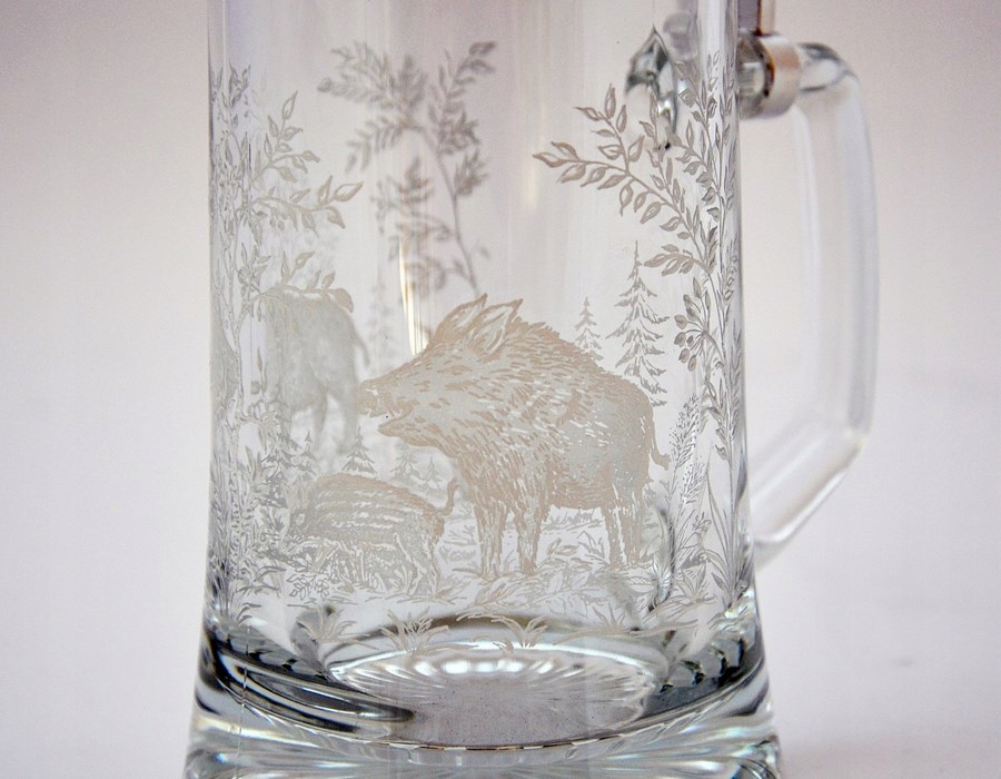 Kufel do piwa DZIK głowa cyna szkło na prezent