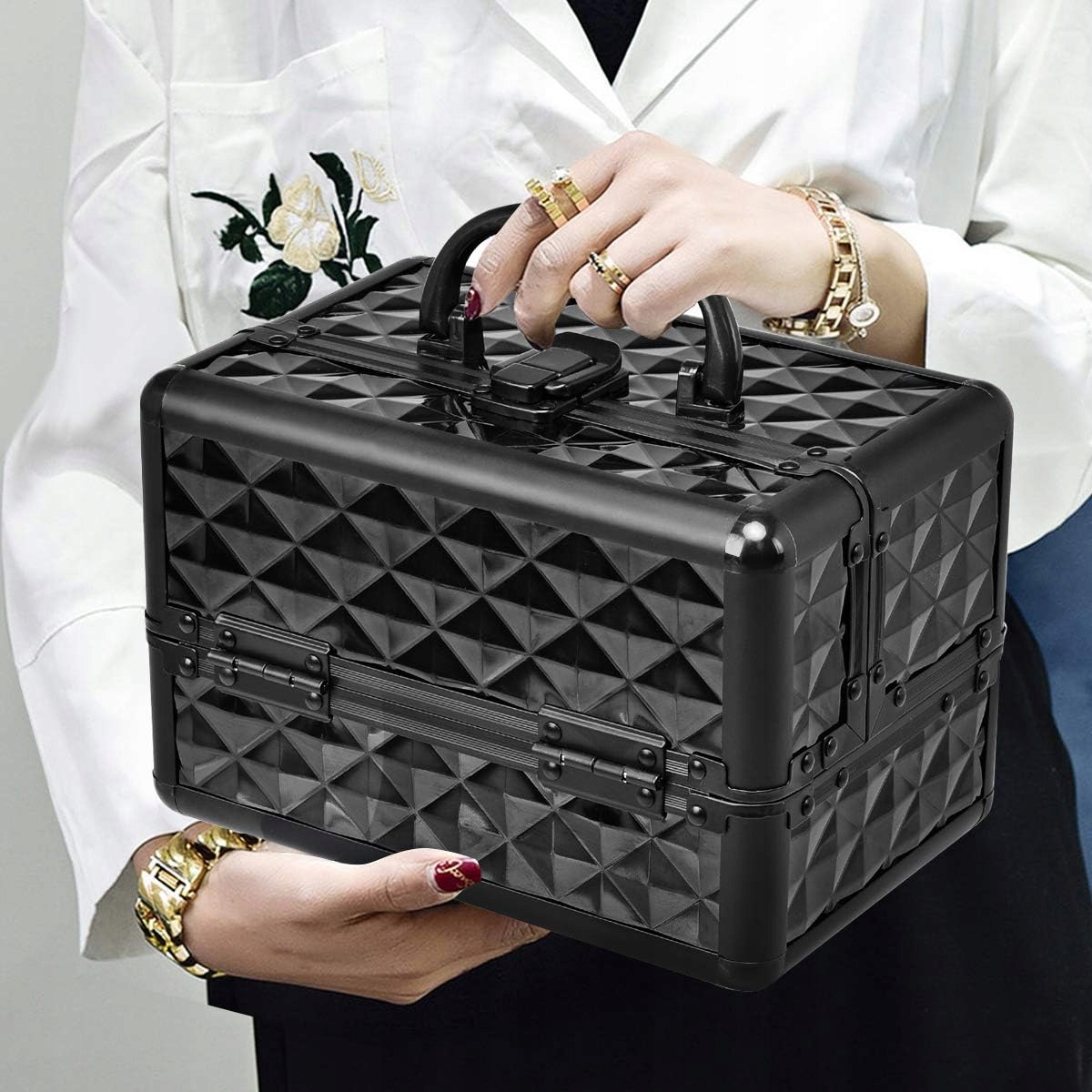 Кейс для красоты, шкатулка для драгоценностей, парикмахерский чемодан с зеркалом, черный, 23 х 15 х 18 см - Прекрасный подарок