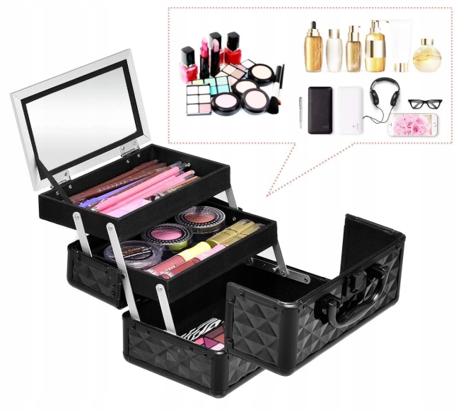 ЧЕХОЛ ДЛЯ КОСМЕТИКИ С ЗЕРКАЛОМ-ОРГАНИЗАТОРОМ ТРУБКА ПОЛКА ЧЕМОДАН КОНТЕЙНЕР ЧЕРНЫЙ