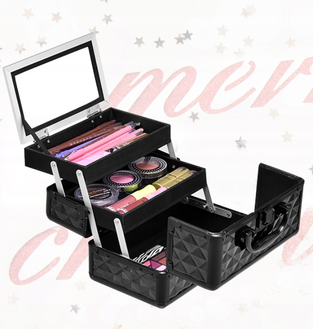 Алюминиевый каркас и 2 выдвижных лотка обеспечивают долговечность и удобное расположение косметики и украшений. Внутреннее пространство вмещает гораздо больше, чем предполагает его компактный размер.
