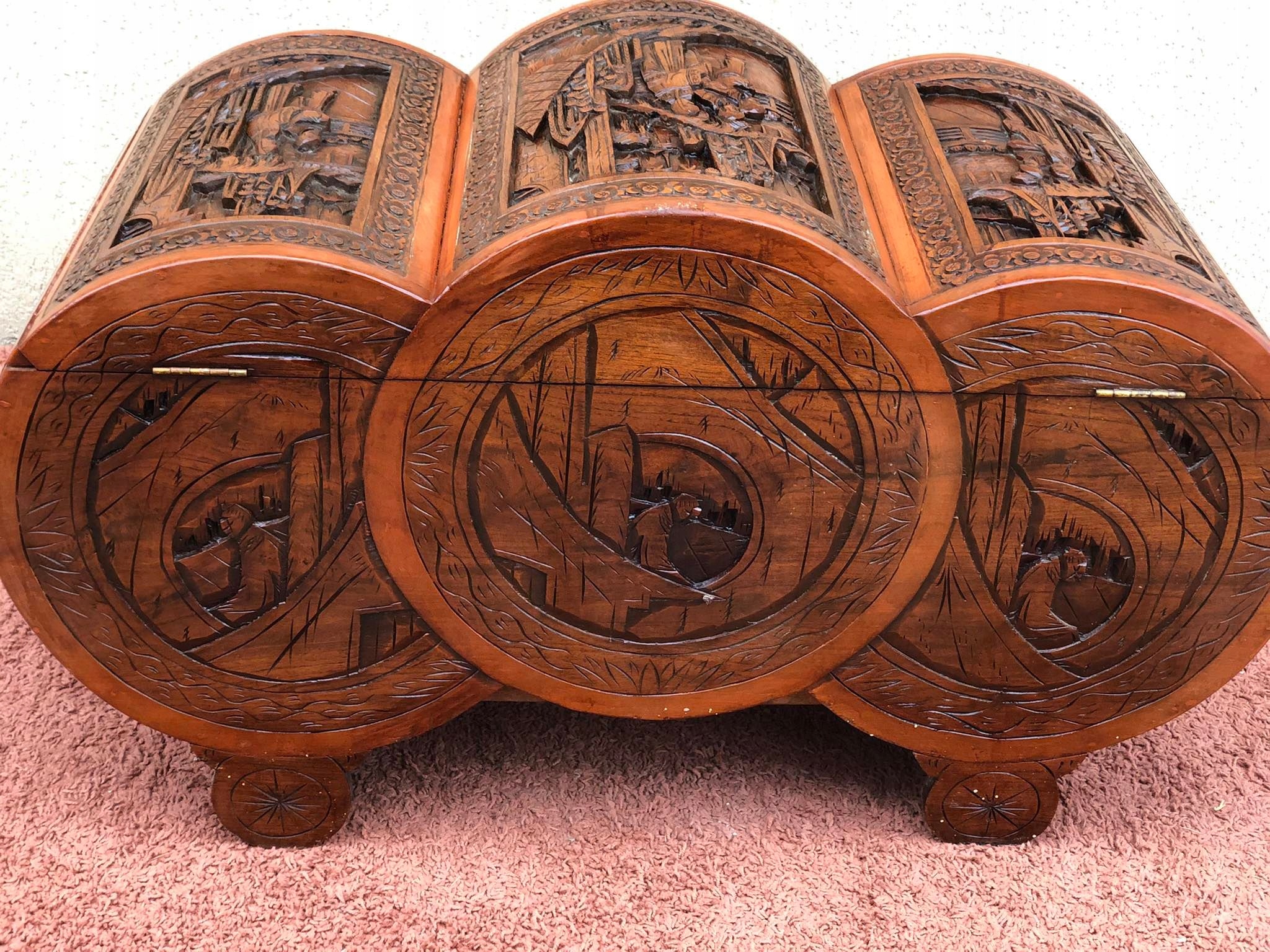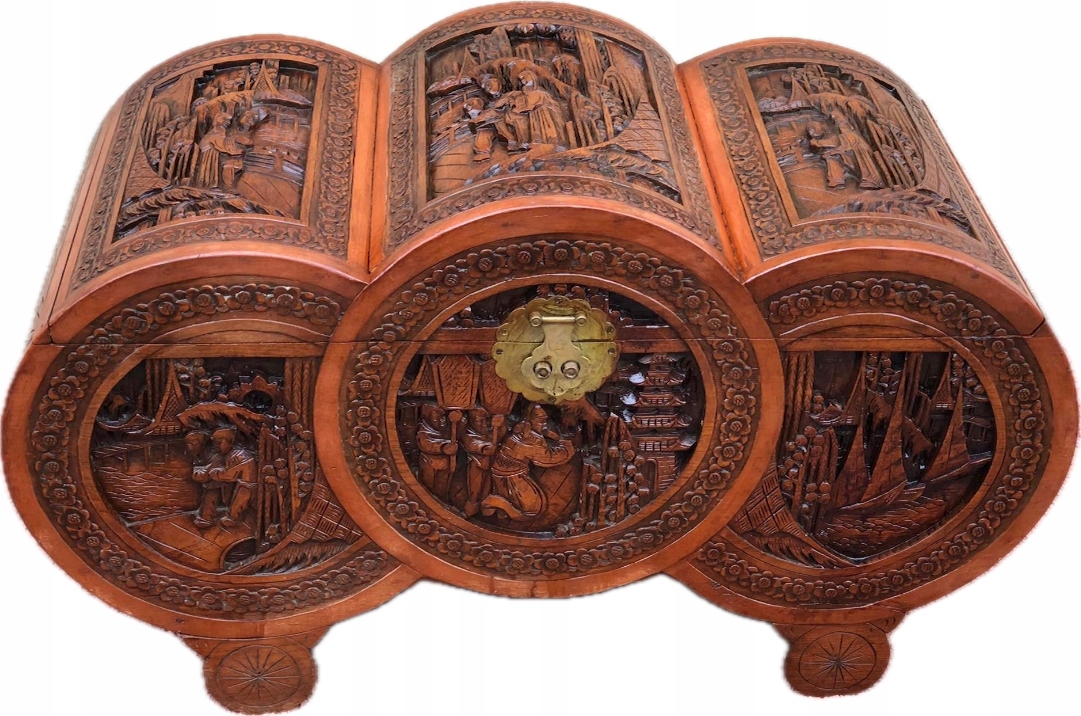 Старый сундук с резной грудью в китайских мотивах