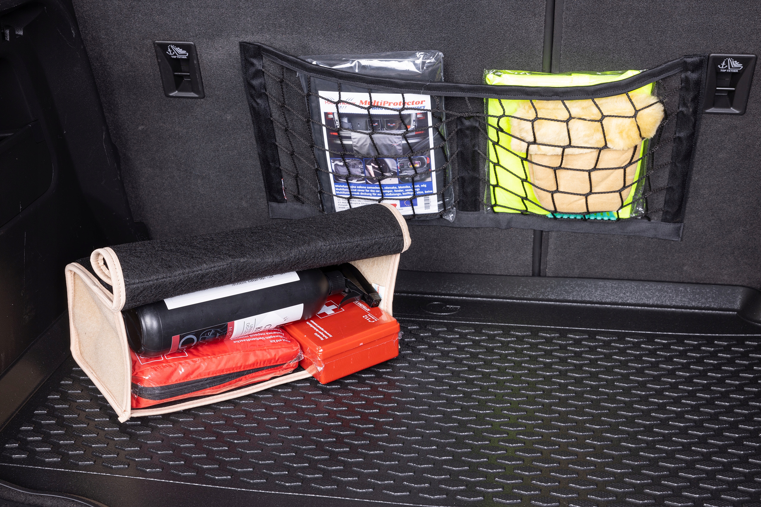 - Удобная форма позволяет хранить пятилитровую емкость с моторным маслом или стеклоомывающей жидкостью или килограммовый огнетушитель, а также другие необходимые в автомобиле инструменты, набор лампочек, аксессуары и т. д.