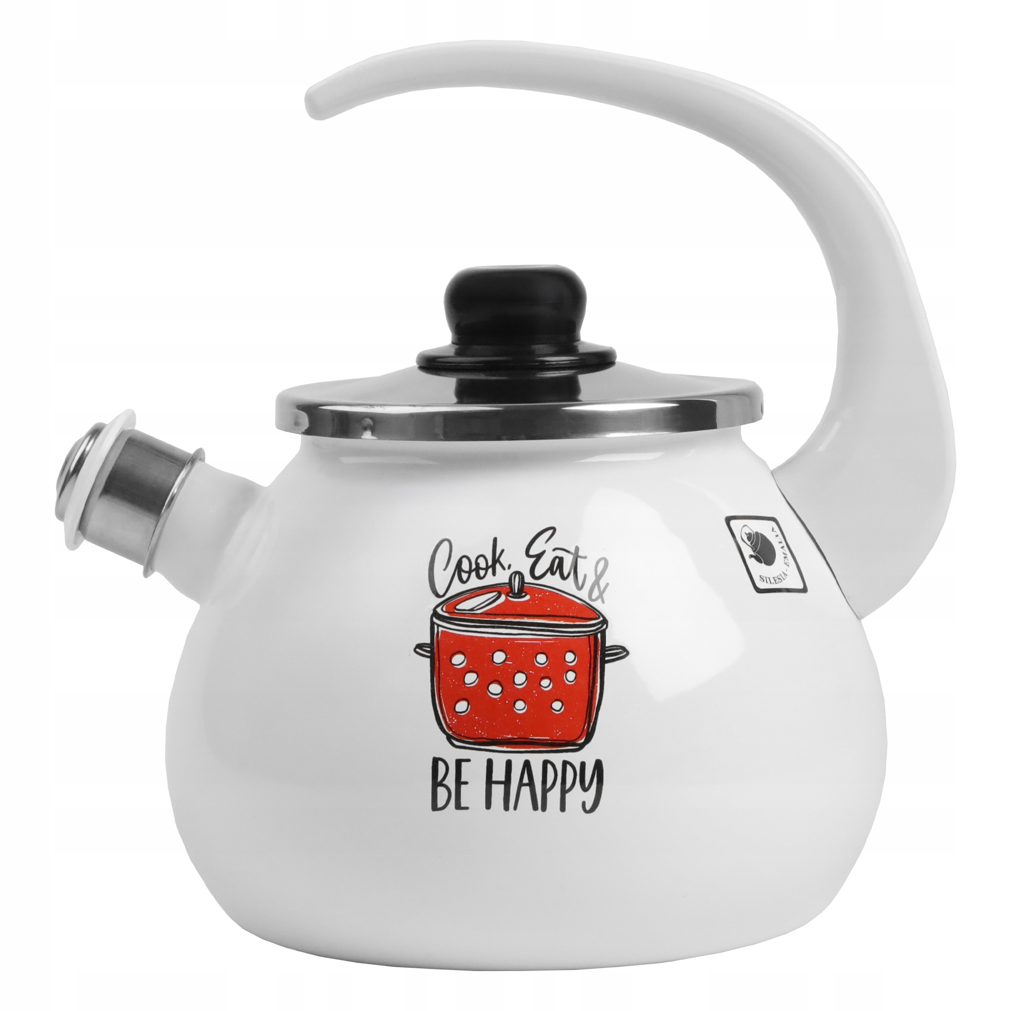 эмалированный чайник "Готовь, ешь и будь счастлив" b> - стильное дополнение к каждой кухне, которая вызовет улыбку во время приготовления. Изготовленная из высококачественной эмалированной стали , обеспечивает длительную прочность и устойчив к механическим повреждениям. Его уникальный дизайн, с очаровательным красным горшочком и вдохновляющим лозунгом «Кук, Ешь и будь счастлив», добавит характер в любой интерьер. Оборудован удобной ручкой, эргономически спроектированным для обеспечения комфорта при заливе воды. Кроме того, свисток сигнализирует о моменте кипящей воды, что позволяет полностью контролировать процесс приготовления. Кетт также легко чистить - благодаря съемной крышке вы можете легко получить к нему доступ