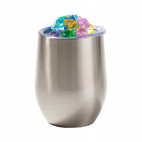 Кружка для глинтвейна 360 мл для сублимации - серебро, крышка с искусственным цветным льдом