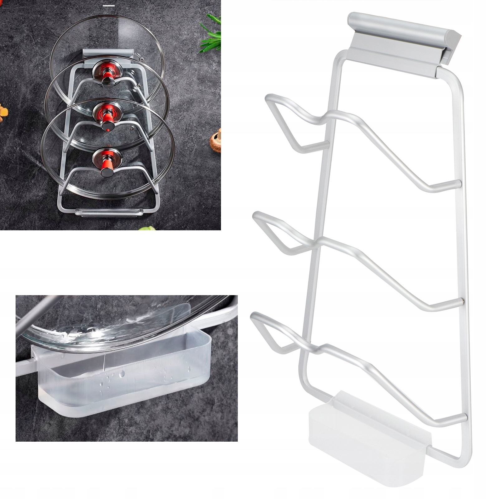 3-х уровневая настенная полка для хранения крышки кастрюли, крышка-органайзер, держатель, кухонные принадлежности (Avec plato de stockage d'eau)