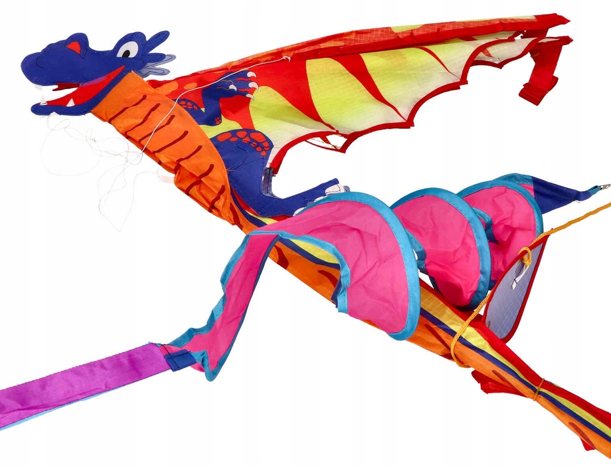 Воздушный змей в форме дракона непременно привлечет внимание прохожих или твои друзья. Размах его крыльев составляет один метр, а длинный развевающийся на ветру хвост достигает 2 метров (191 см). Удержать змей такого размера на 40-метровой веревке непросто, но вы наверняка быстро выработаете навыки, которые позволят вам эффектно управлять этим типом воздушного змея. Воздушный змей красного, желтого, оранжевого и синего цветов будет переливаться в небе, как радуга. Дополнительным преимуществом воздушного змея-дракона является прикрепленная спираль на конце хвоста. Развевающаяся спираль различных цветов и столь впечатляющие размеры сделают этот красочный воздушный змей хорошо видимым даже с большого расстояния. При желании вы можете в любой момент отстегнуть или закрепить спираль. Прохожие гарантированно будут удивлены :)