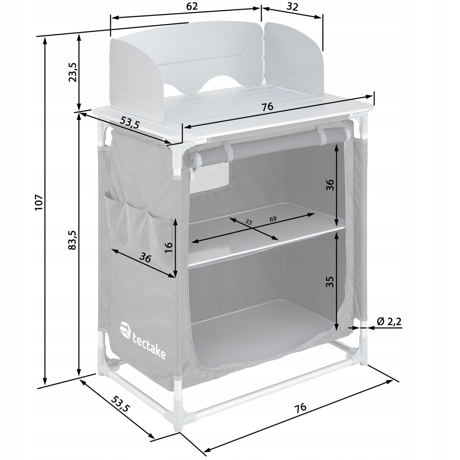 Нижний отсек для хранения (ширина x глубина x высота): прибл. 69 x 35 x 35 см