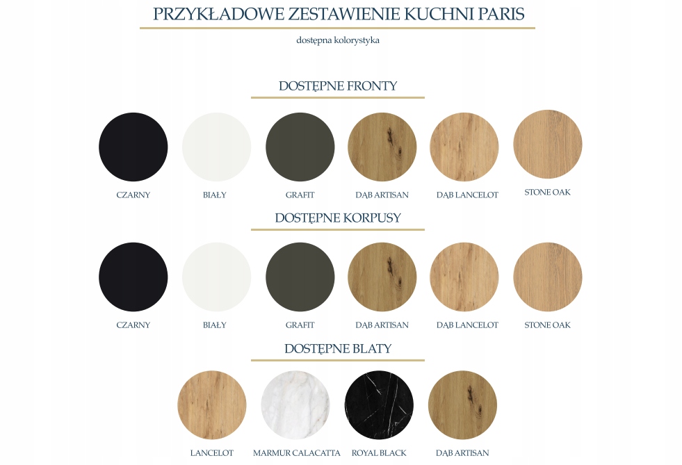 Кухня PARIS — это системная мебель, которую можно подогнать под любой размер. Доступно до 19 цветов фасадов в глянцевом, матовом и ламинированном исполнении.