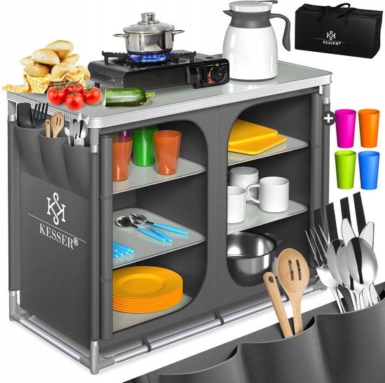 Собери с собой, где бы вы ни находились! Складная кухня Кессера - это идеальное решение для кемпинга, участка, террасы или на открытом воздухе. Благодаря легкой алюминиевой конструкции и практической транспортной сумке, у вас всегда есть мобильный кухонный центр под рукой.