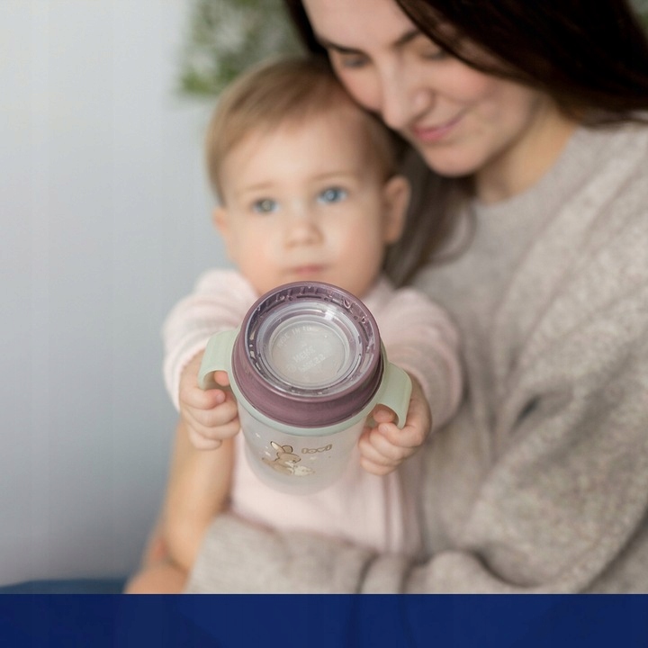Благодаря инновационному уплотнению позволяет сосать жидкость из любого места по краю. Этот ребенок привыкает к естественному, взрослому методу питья, как из открытой чашки и из стакана, но без разлива. Мундштук обладает антибактериальной защитой благодаря специальному добавлению SaniConcentRate ™, которое снижает до 99% бактерий*. Контурированные ручки адаптированы к маленьким рукам ребенка, и, кроме того, они сияют в темноте, что облегчает поиск чашки ночью.