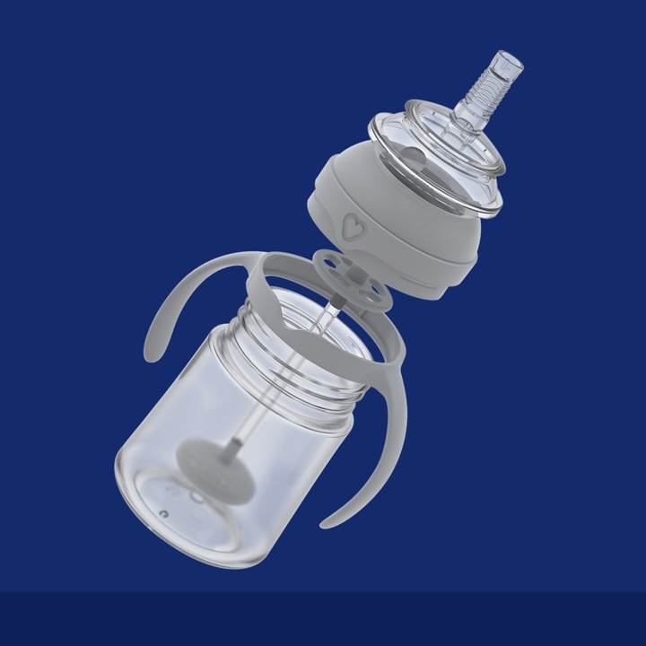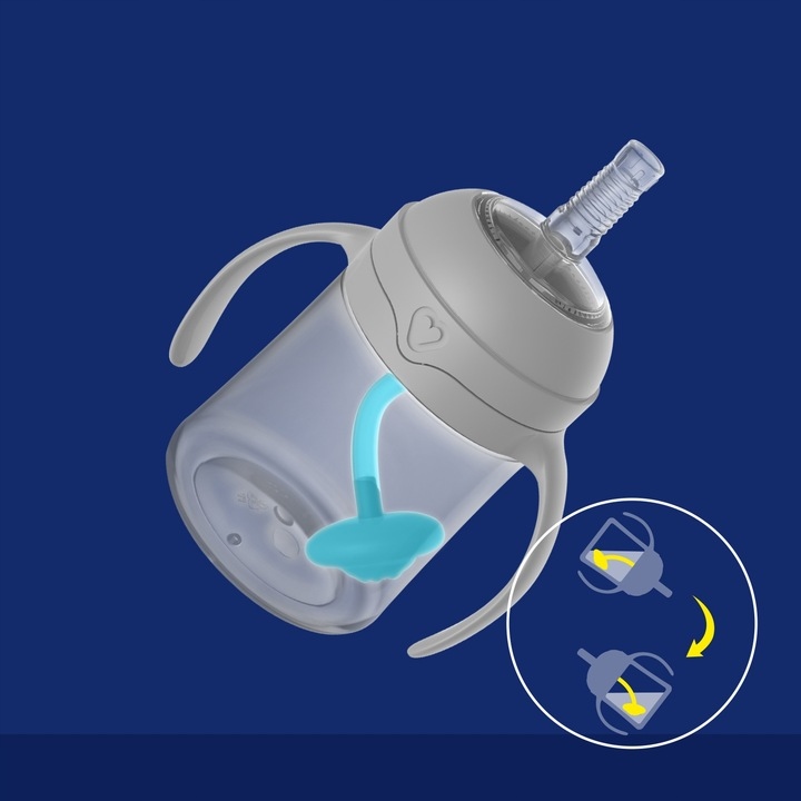 - мундштук согнут, как чайная ложка, потому что при выходе из бутылки рекомендуется подавать воду из чайной ложки, поэтому чашка великолепна в начале обучения пить.