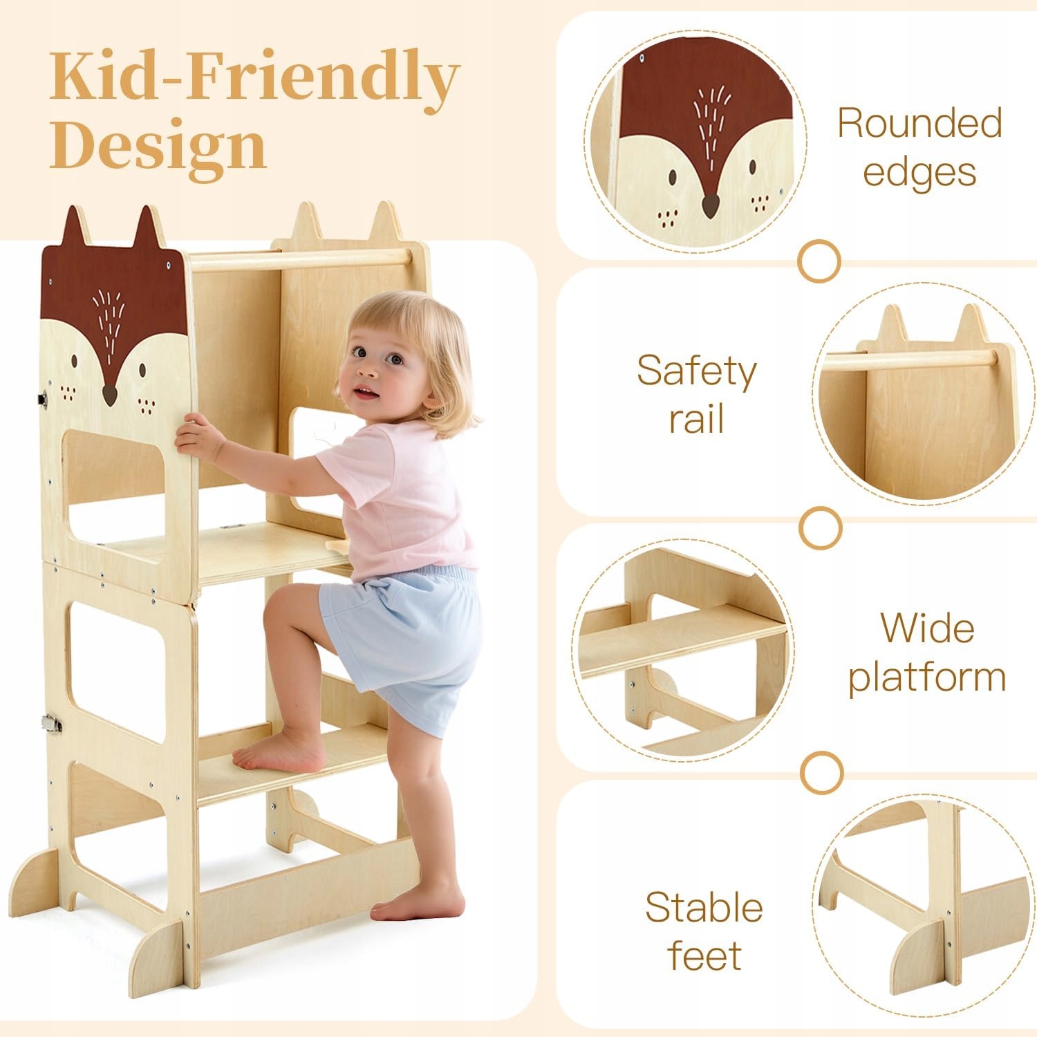 ☀ Регулируемая высота платформы: Башня растет вместе с вашим ребенком! Благодаря возможности настройки высоты платформы, вы прекрасно адаптируете ее к росту малыша, обеспечивая комфорт и безопасность в течение длительного времени.