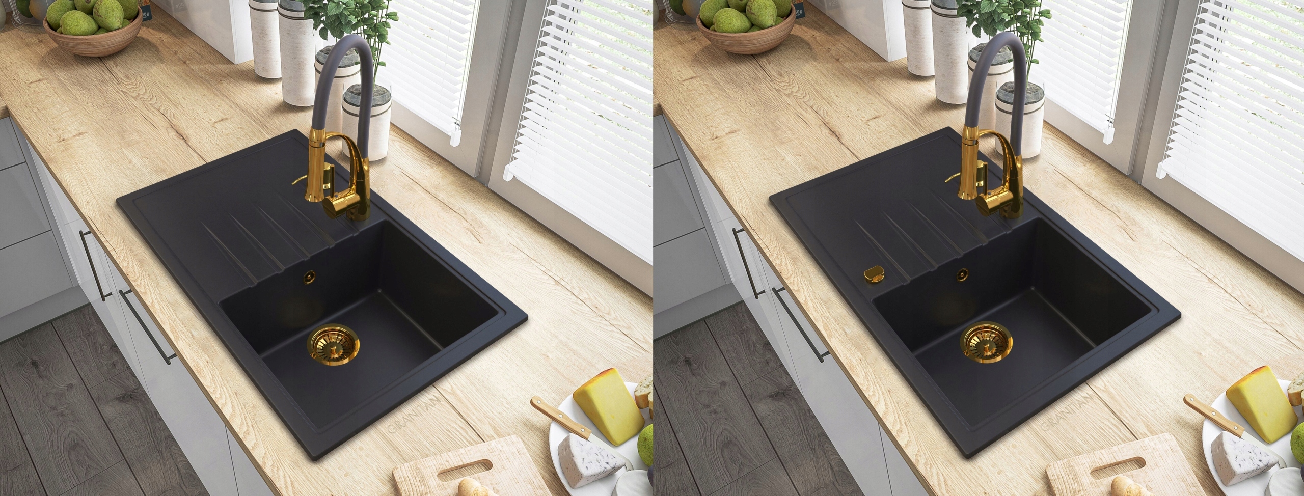 КАЖДЫЙ КОМПЛЕКТ ВКЛЮЧАЕТ ЗОЛОТОЙ СИФОН, СЛИВ И ПЕРЕЛИВ ЗОЛОТА