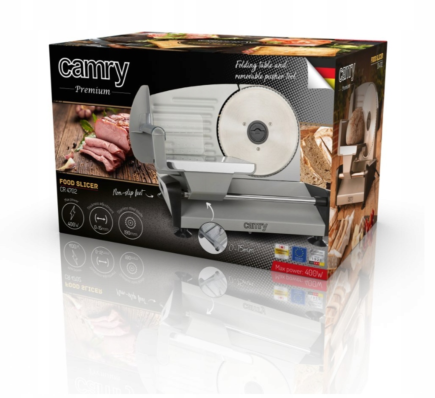 Надежный металлический слайсер с удобным наклоняемым столиком и съемным толкателем. Высокое качество Лезвие из нержавеющей стали позволяет нарезать мясо тонкими ломтиками и отрезать цельный ломтик деревенского хлеба. Толщину нарезки можно свободно регулировать, что упрощается благодаря четкому индикатору текущей настройки.