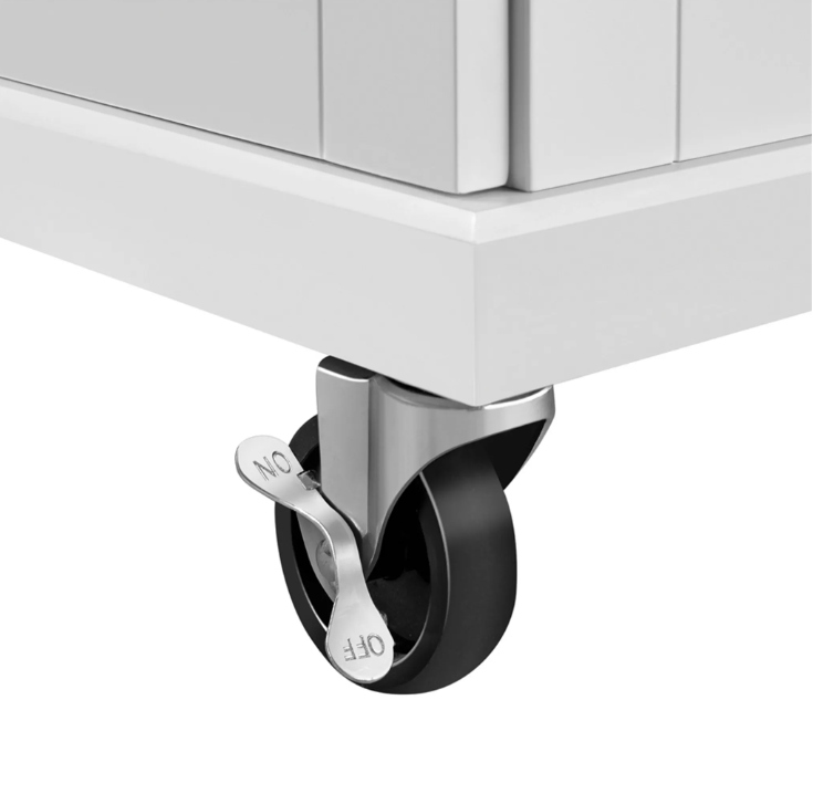 Универсальное пространство для хранения - эта кухонная коляска состоит из 1 столешницы, 1 ящика и 1 шкафа с полкой с регулируемой высотой. На стороне есть 1 вешалка для полотенца и 1 подставка для специй. 2 колеса оснащены тормозами, благодаря которой коляска может быть иммобилизована при необходимости. Ящик с внутренними размерами длиной 53,2 см × 33,6 см шириной × 8 см и шкаф с регулируемой полкой, обеспечивая порядок на кухне