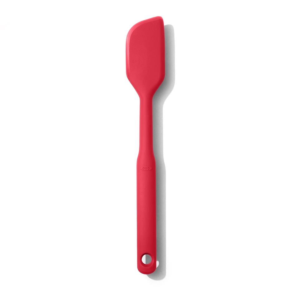 Это красная лопатка OXO из коллекции Good Grips, выполненная из силикона.