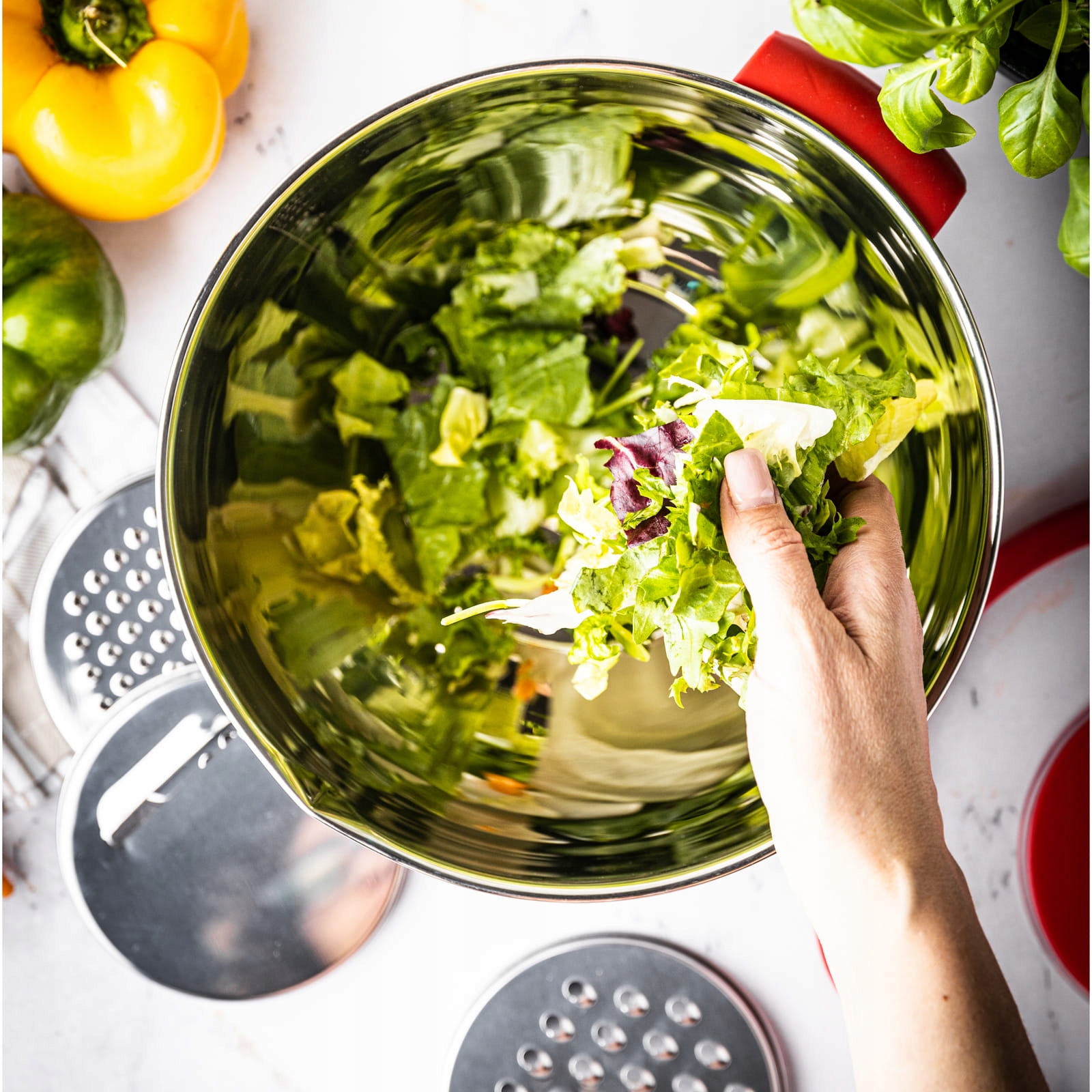 - Возможность натирания овощей, фруктов, шоколада и многих других пищевых продуктов непосредственно в чашу. чаша. Герметичная крышка позволяет закрывать и хранить, например, продукты. тесто, тертые овощи в холодильнике или морозилке.