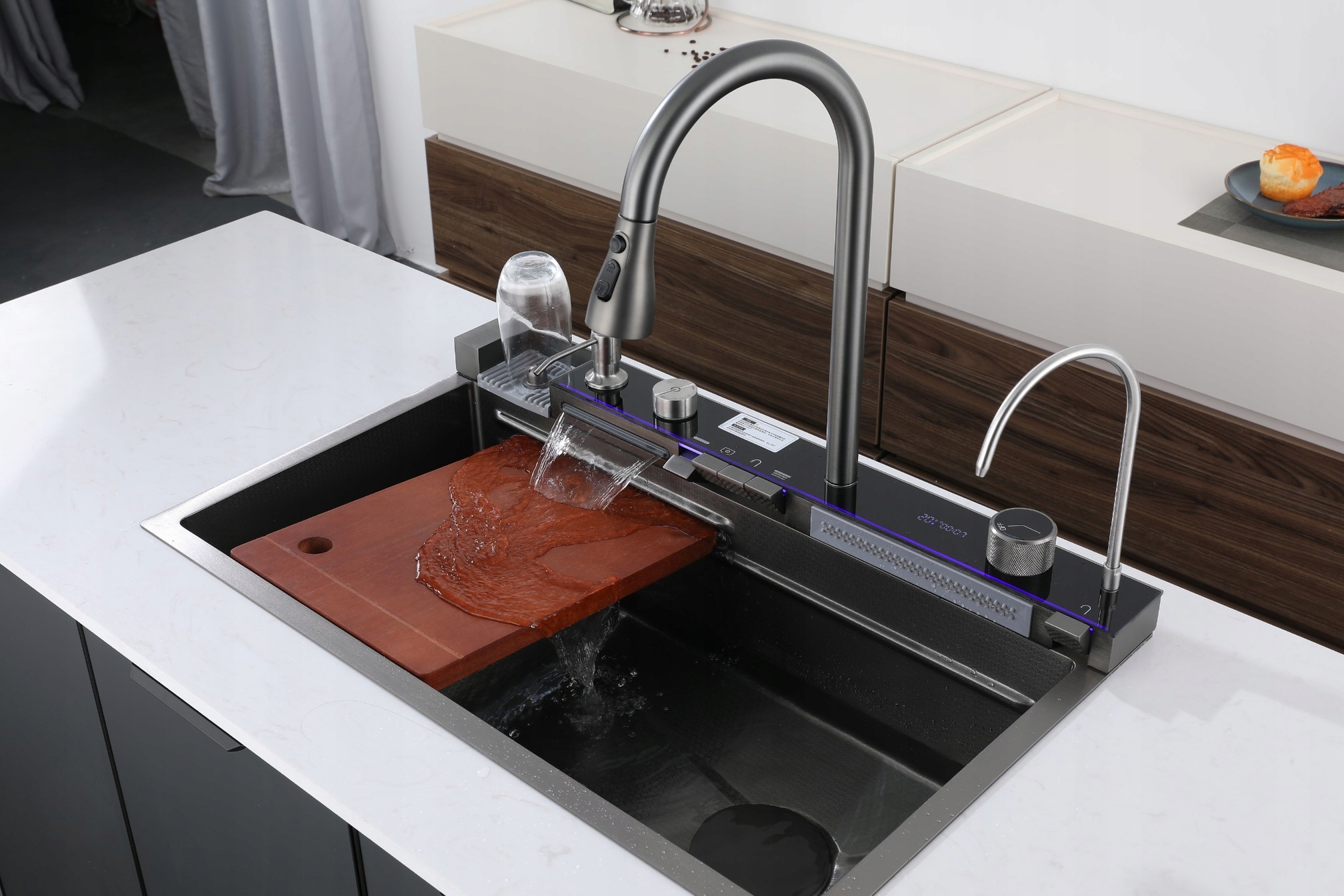 Эстетика: Светодиодная панель с подсветкой придает мойке элегантность и может служить привлекательный элемент на кухне, особенно в современном интерьере.
