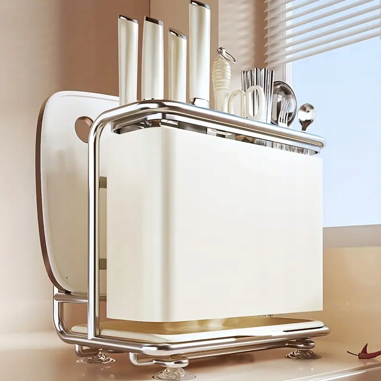 Кухонная подставка для ножей досок столовых приборов из нержавеющей стали с капельным подносом