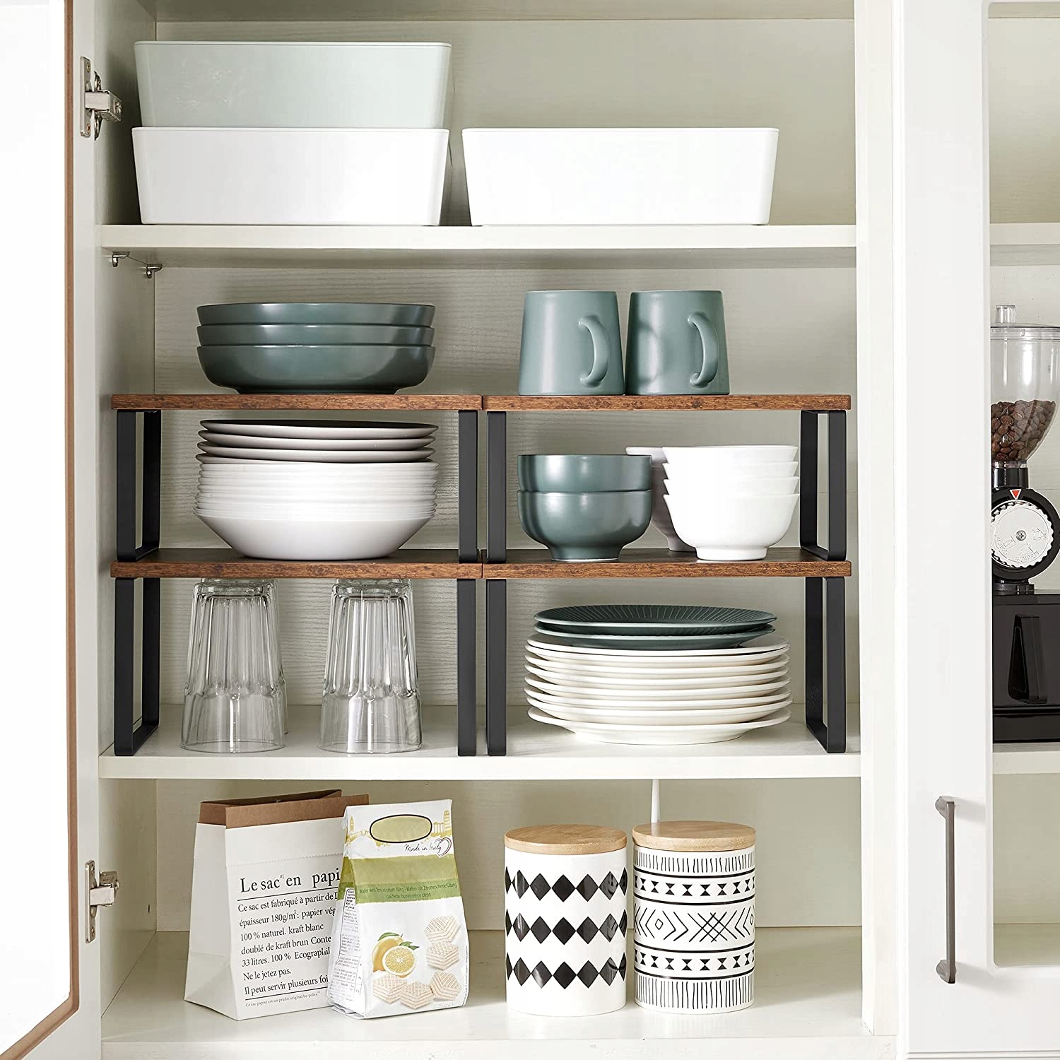 ✔️ На кухне: поставьте их в шкаф или на стойку, чтобы создать больше уровней и больше возможностей для штабелирования коробок с хлопьями, баночек для специй, стаканов, мисок и многого другого. На кухне никогда не бывает слишком много полок, верно?