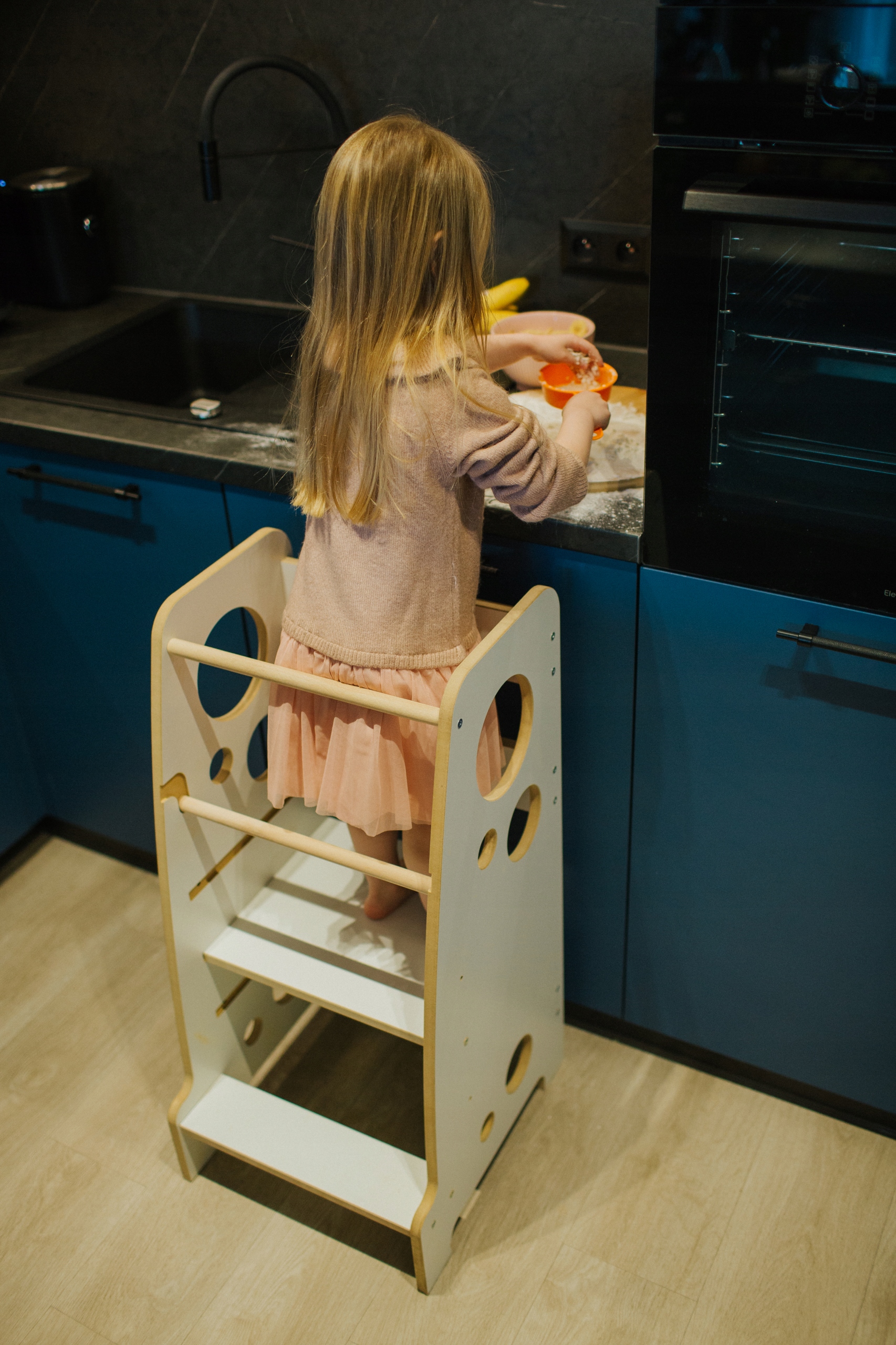 Кухонный помощник обеспечивает безопасность вашего малыша, который может оказаться под угрозой, забравшись на стул или табуретку.
