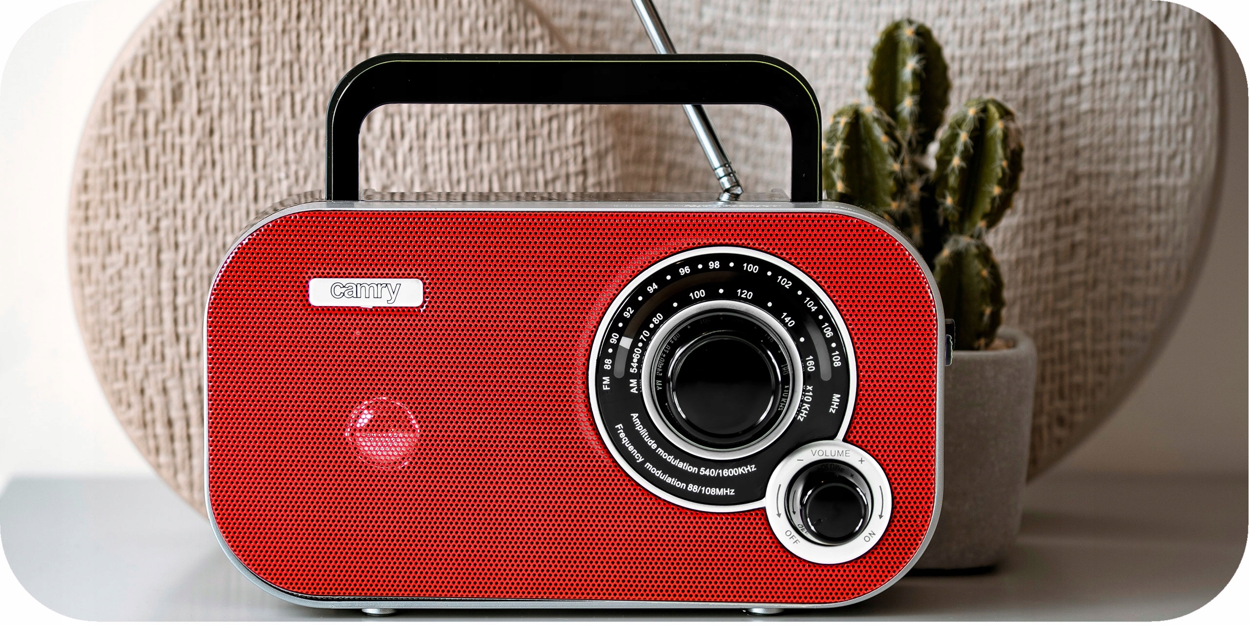 Небольшое портативное радио, которое идеально подходит как для работы, так и дома. Радио можно питать с помощью чередующегося тока или 4 батарей R14. Он характеризуется высокой надежностью и сопротивлением внешним факторам. Радио получает трансляцию трансляции на ультра -шорт и сантиметровых волнах. Имеет вклад наушников, для людей, которые предпочитают слушать индивидуально