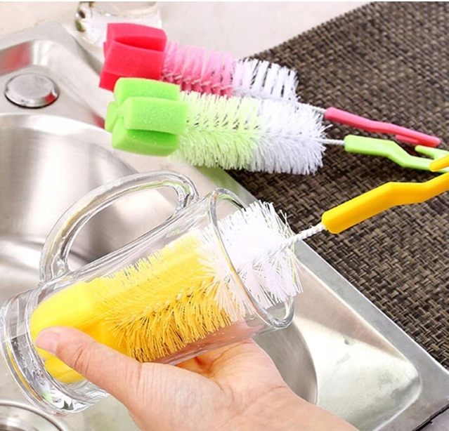 Кухонная щетка для бутылок для стирки очков, длинное чистящее средство с губкой