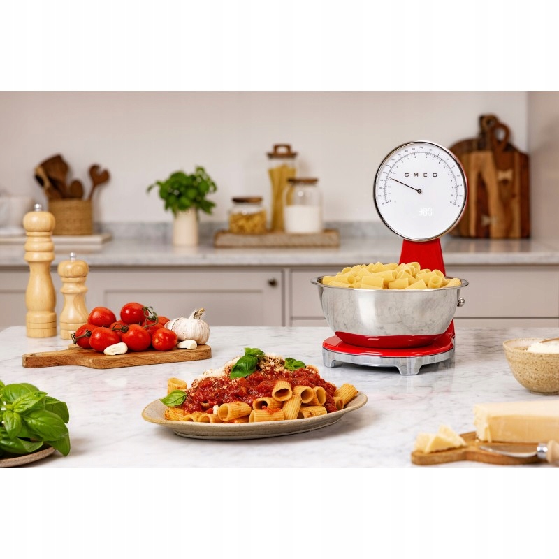 Вес SMEG, оснащенный двумя дисплеями: классический аналоговый и современный цифровой светодиод. Познакомьтесь с незаменимым помощником на кухне, который сочетает в себе стиль ретро с современной функциональностью. Компактный, элегантный и чрезвычайно универсальный - это не только устройство, это первый шаг к кулинарным успехам. Вдохновляйтесь дизайном, который впечатляет, и готовить со страстью каждый день.