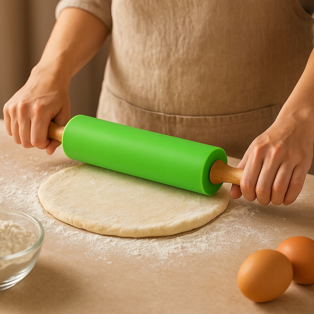 Силиконовая скалка – незаменимый помощник на каждой кухне. Благодаря антипригарному покрытию и удобным деревянным ручкам он идеально подходит для раскатывания теста для пельменей, пиццы, пасты или печенья.