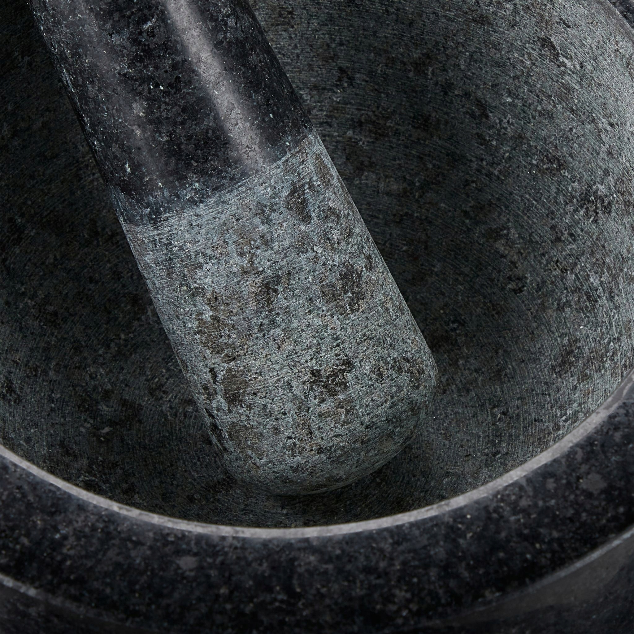 Гранитный раствор отличается высокой устойчивостью к повреждениям, а его массивная структура гарантирует устойчивость во время работы. Матовая поверхность облегчает измельчение ингредиентов и подчеркивает натуральный характер продукта. Он идеально подойдет для приготовления песто, травяных паст или специй для маринадов, а также станет эстетичным дополнением кухонного декора.